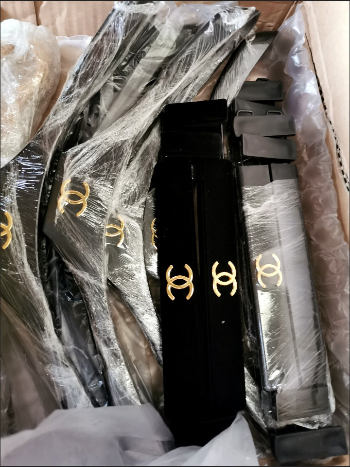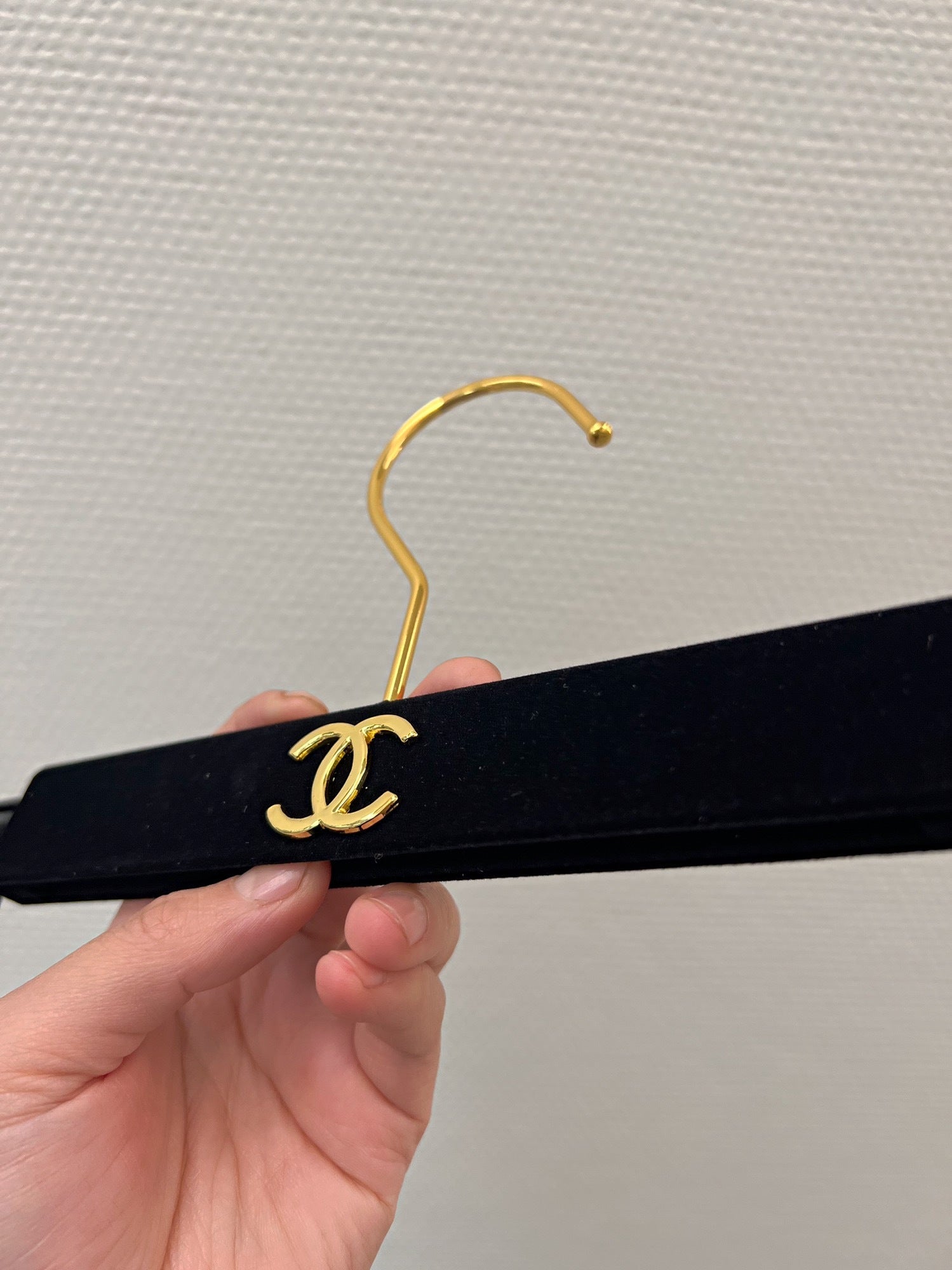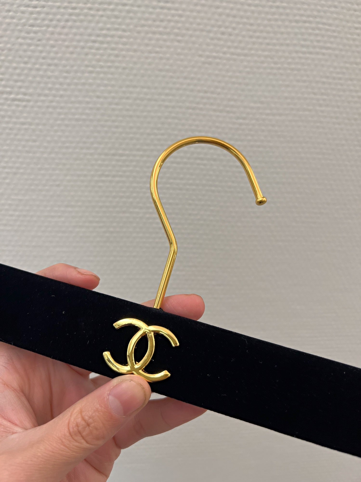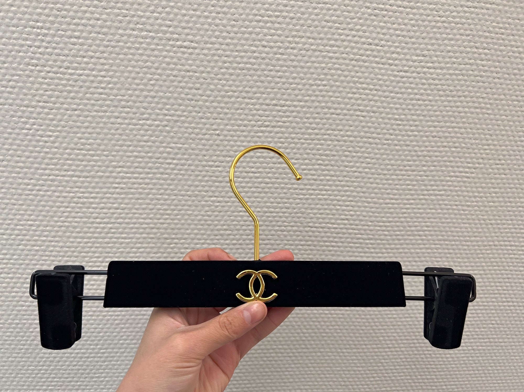 Chanel hanger's in black velvet and gold hardware