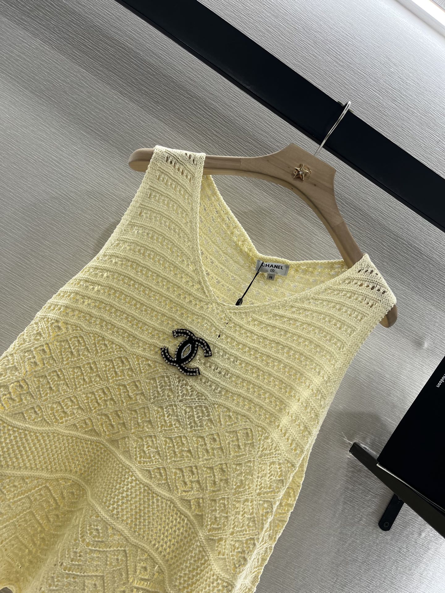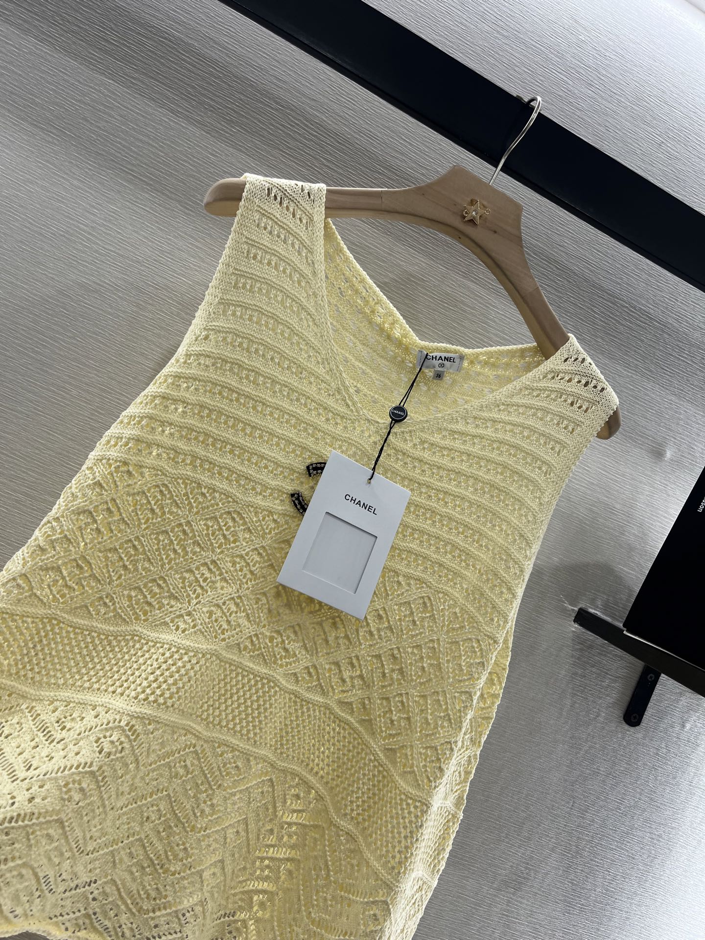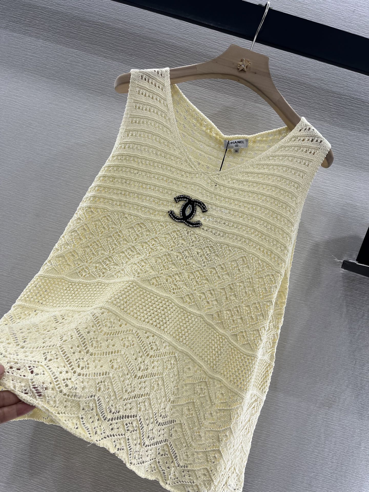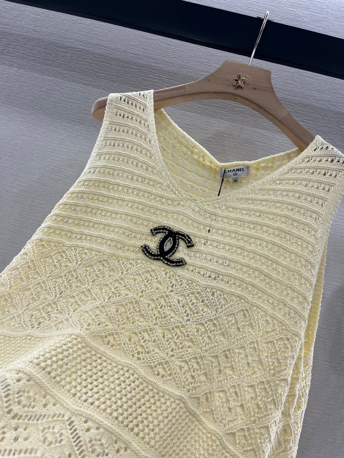 CHANEL LIGHT YELLOW SLEEVELESS KNIT TOP