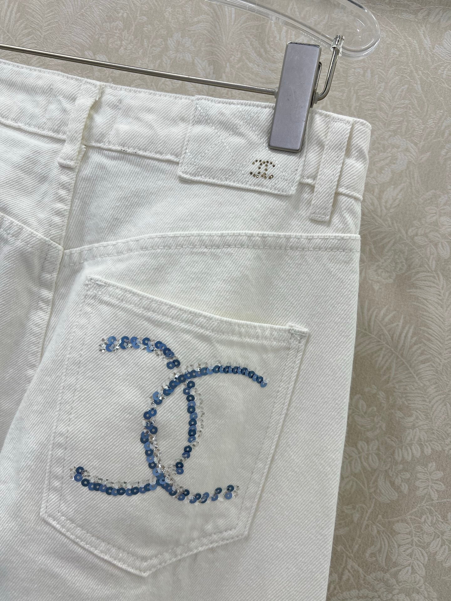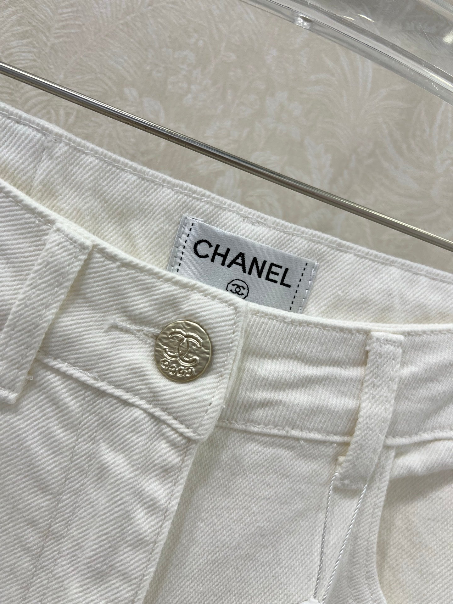 CHANEL PLAIN WHITE DENIM PANTS 275041