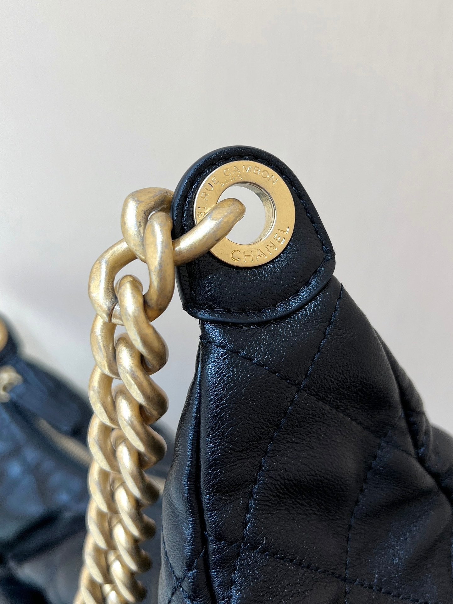 CHANEL QUILTED HOBO CARGO BAG 35 IN BLACK CALFSKIN GOLD CHAIN