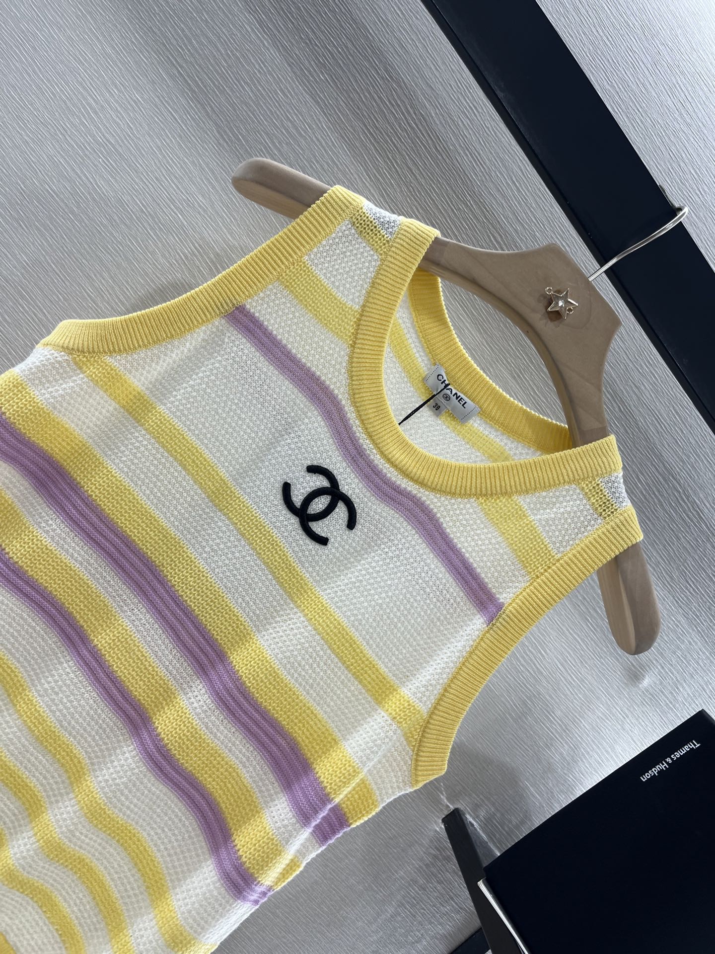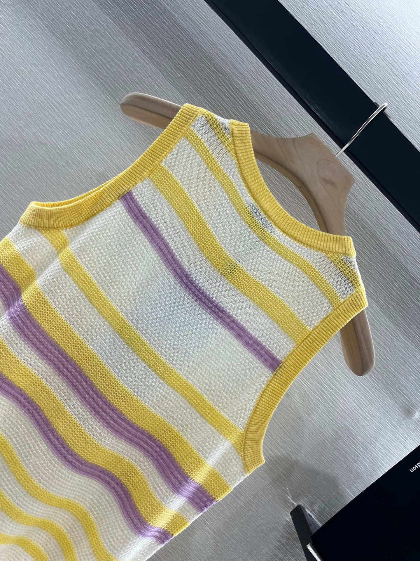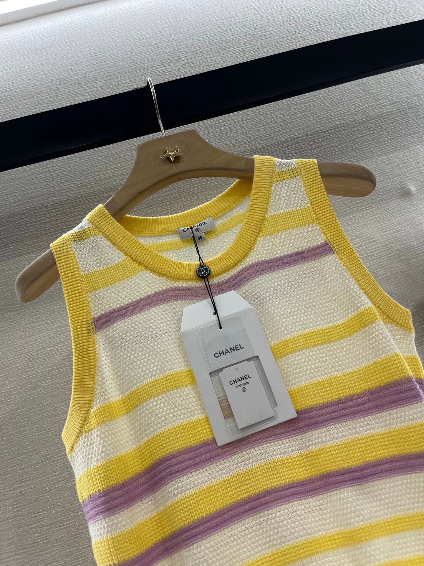 CHANEL STRIPED SLEEVELESS KNIT TOP 263403