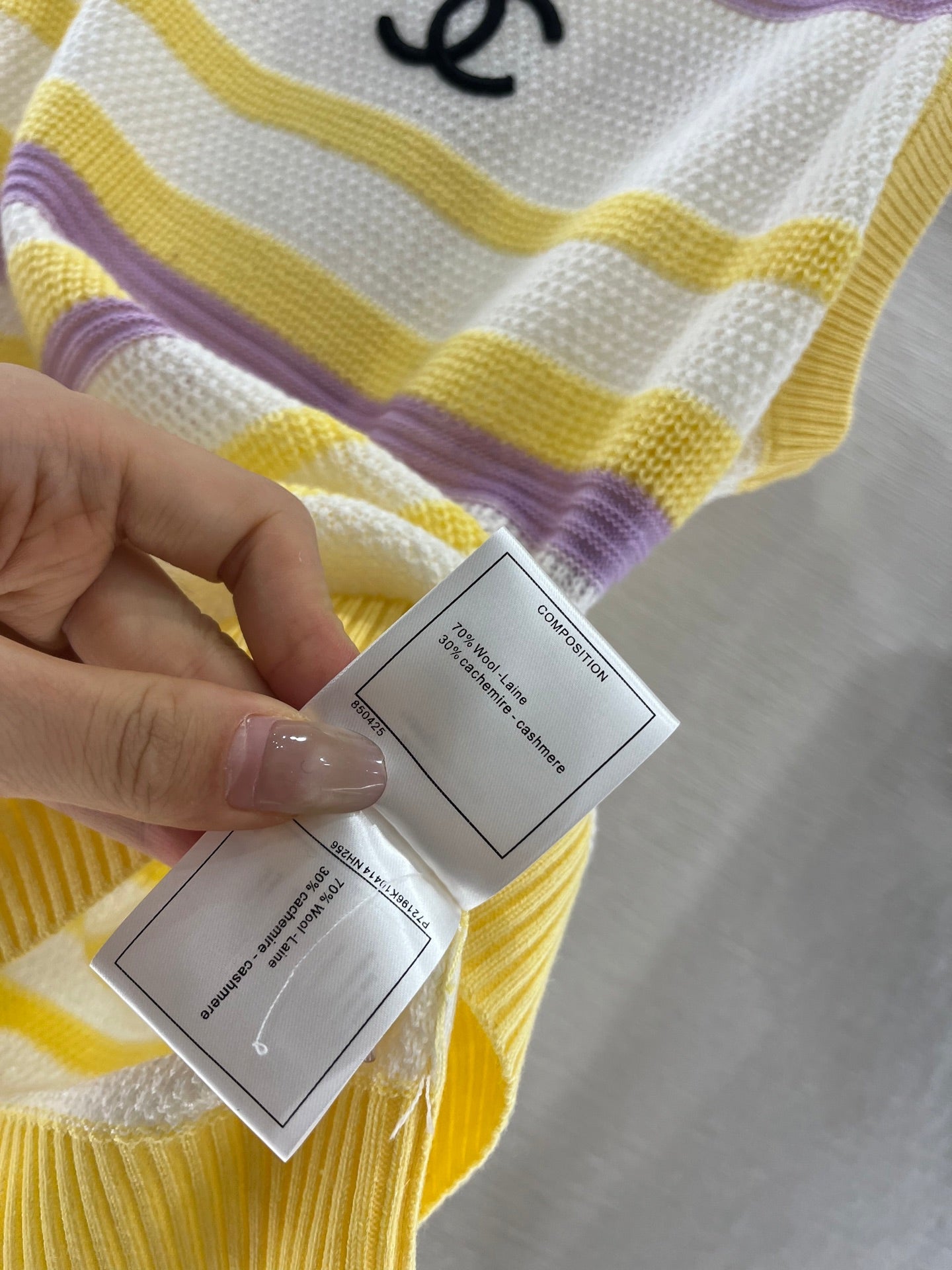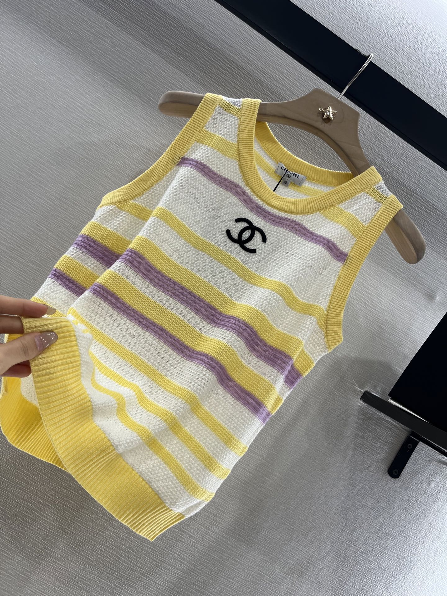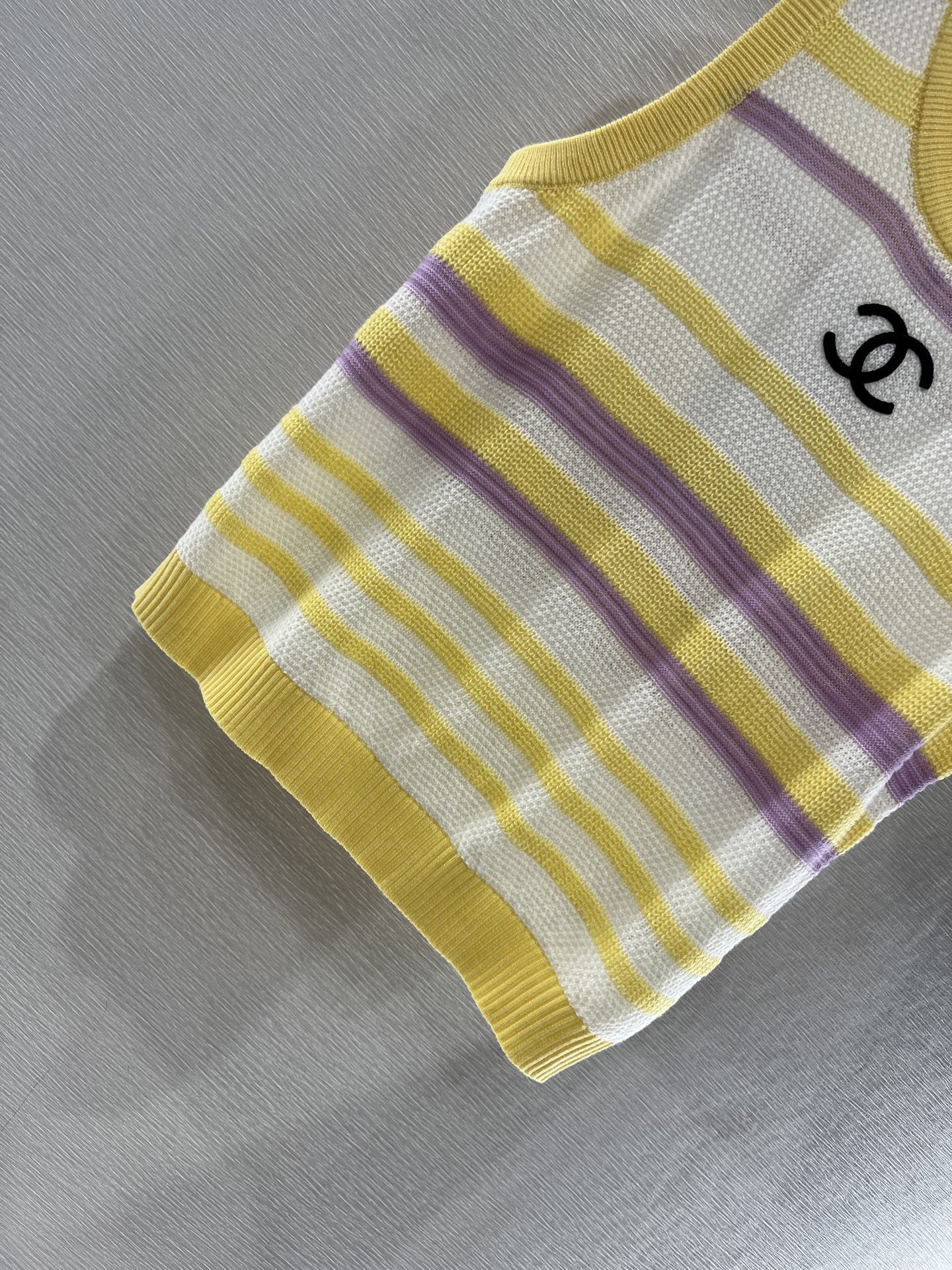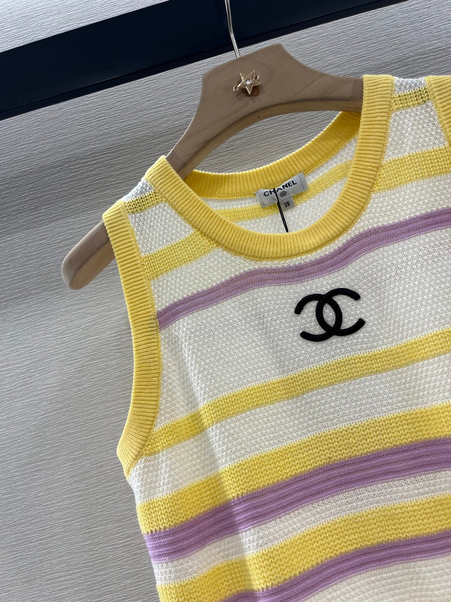 CHANEL STRIPED SLEEVELESS KNIT TOP 263403