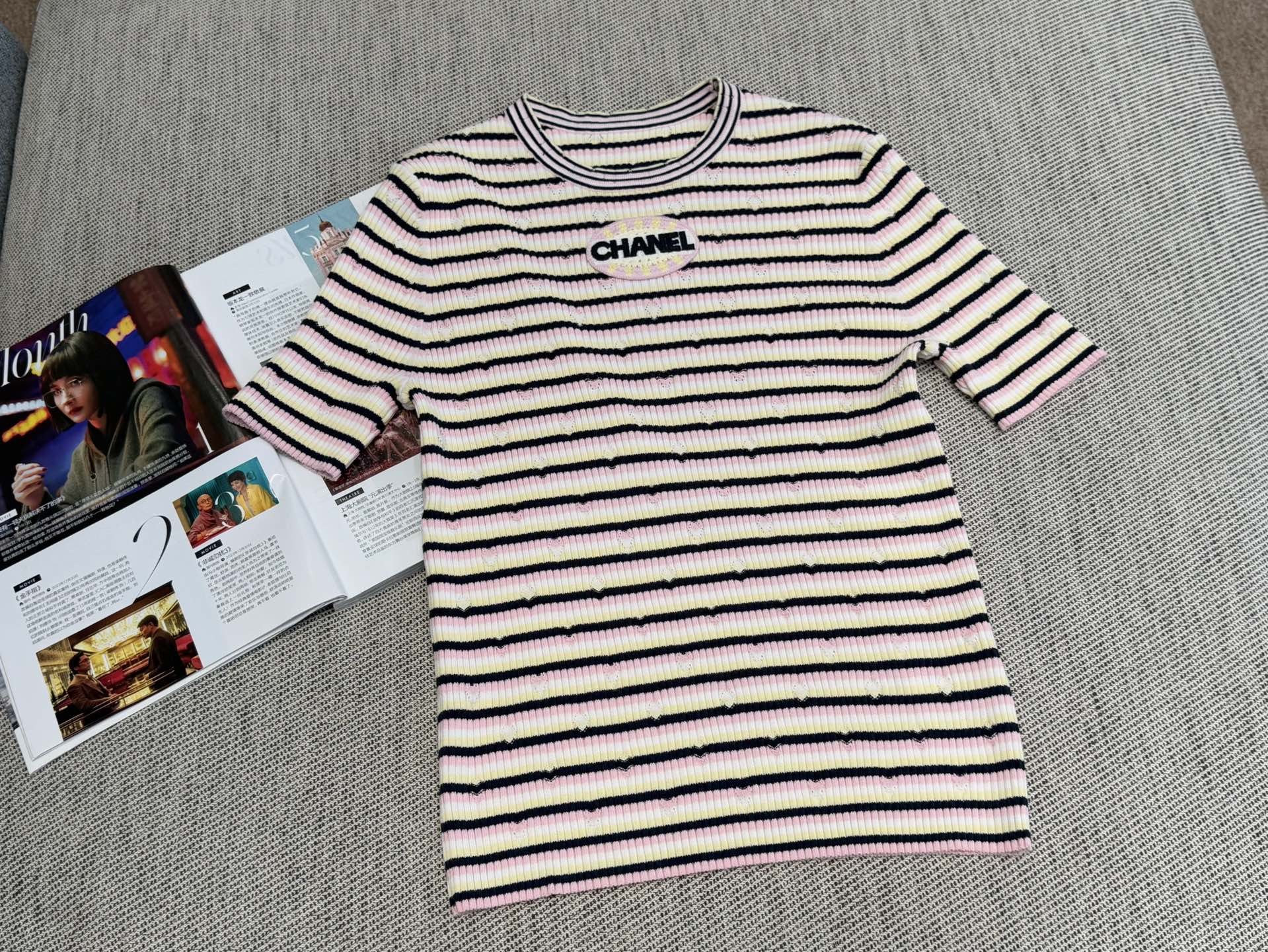 Chanel T- Shirt Pink Yellow mix Black Tencel 232702