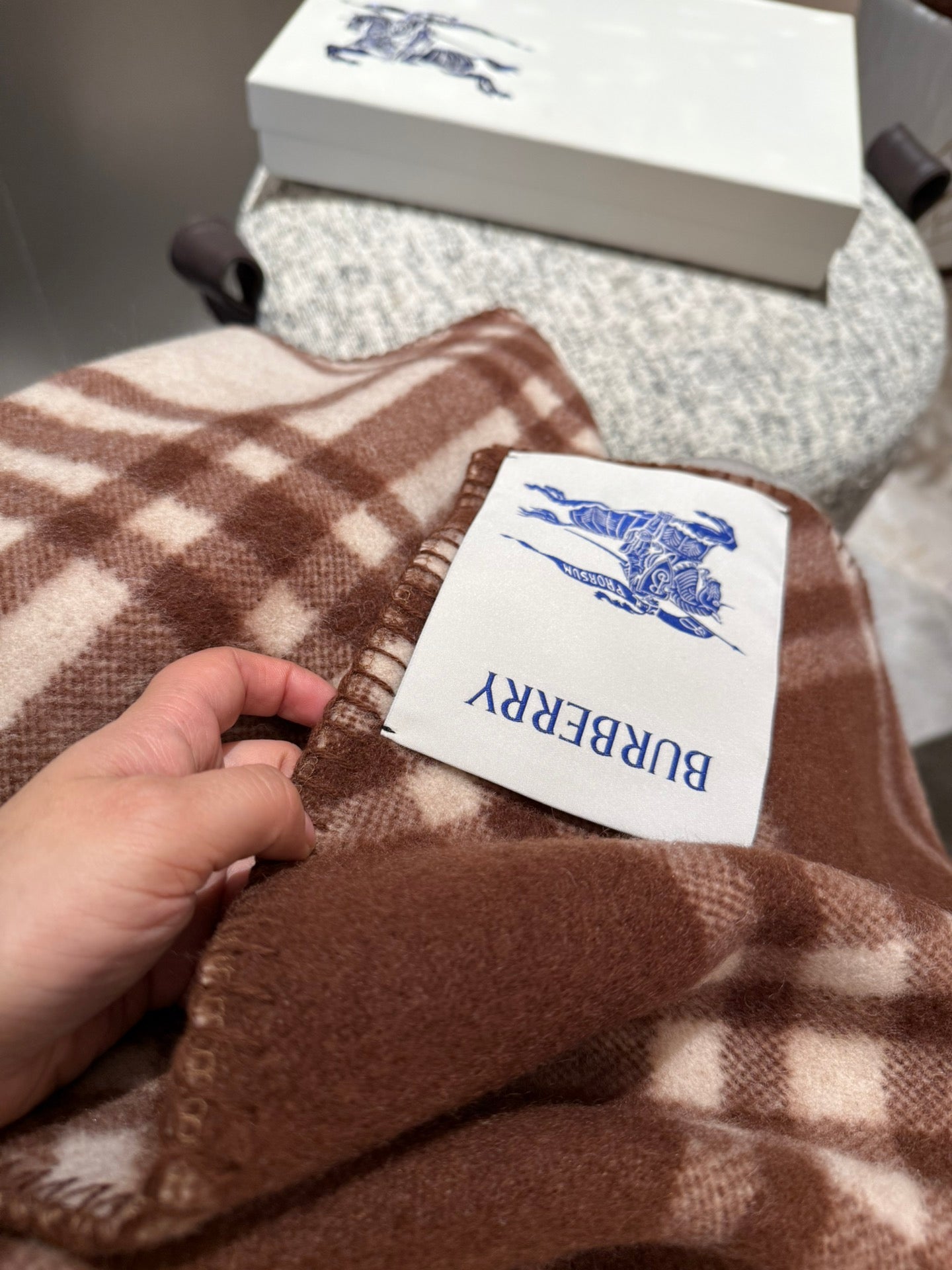 CHECK WOOL SCARF 180 CM CHOCOLATE BROWN 407405