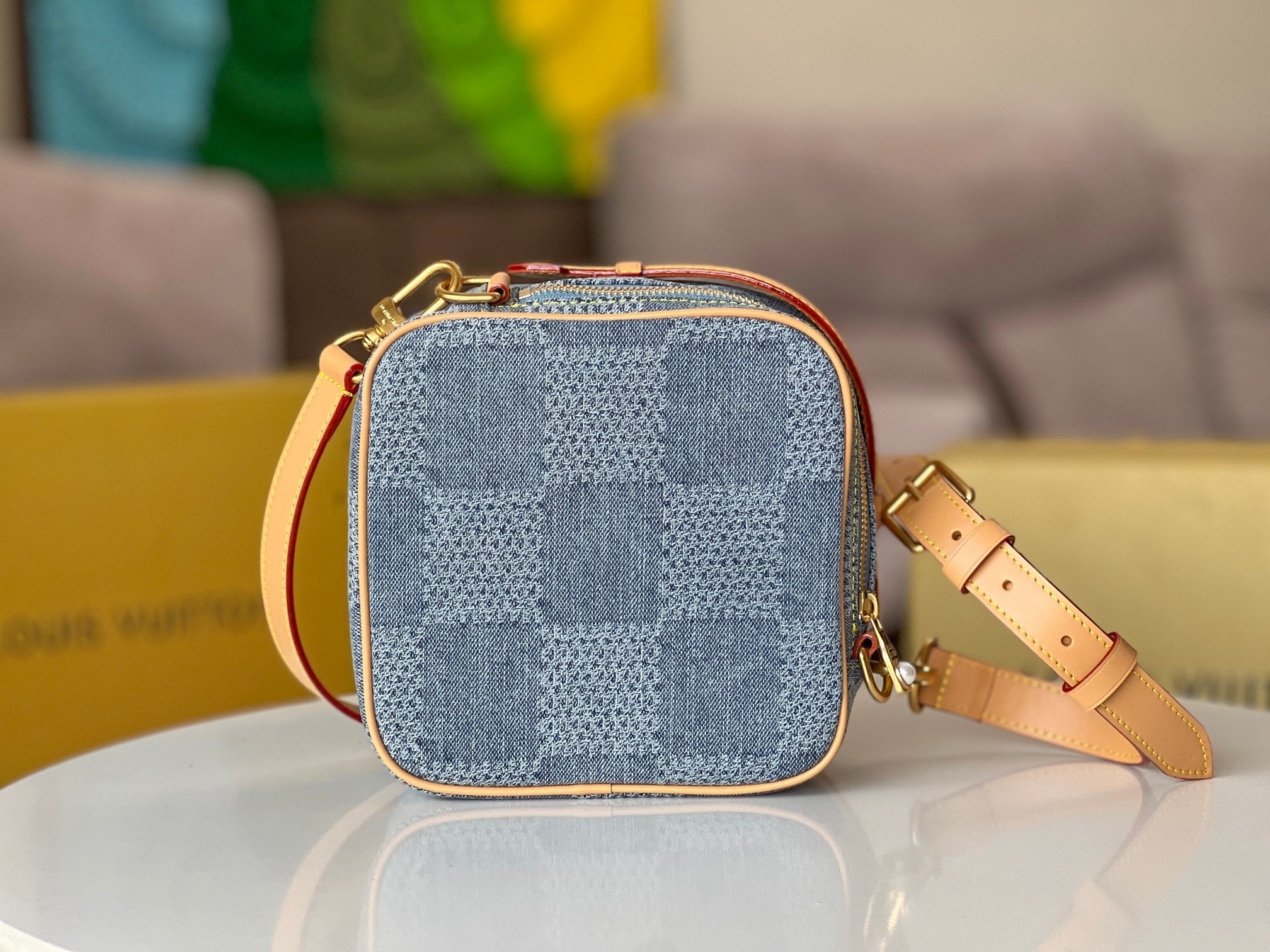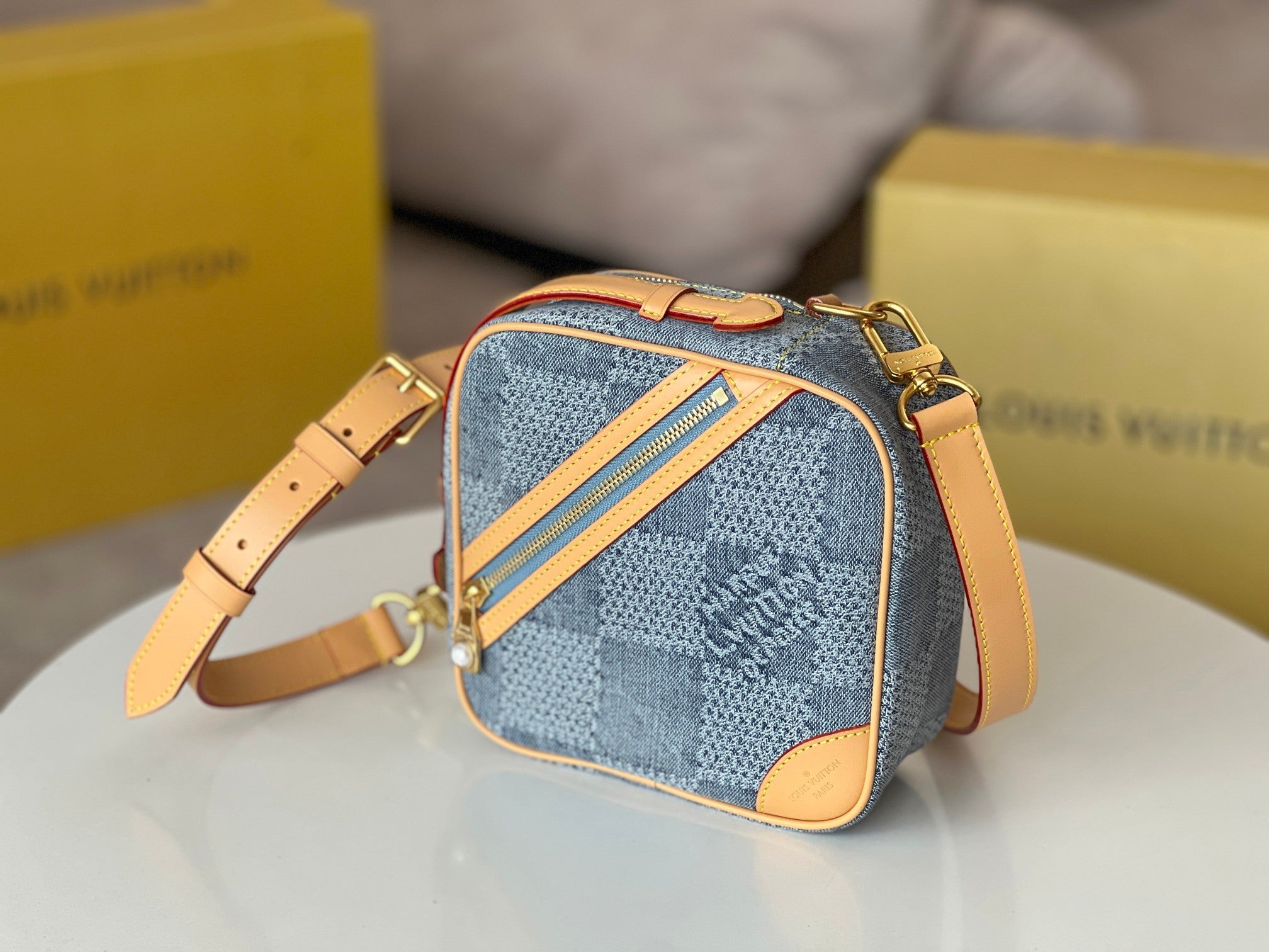 CHESS MESSENGER 24 IN COLUMBIA BLUE DAMIER DENIM 3D