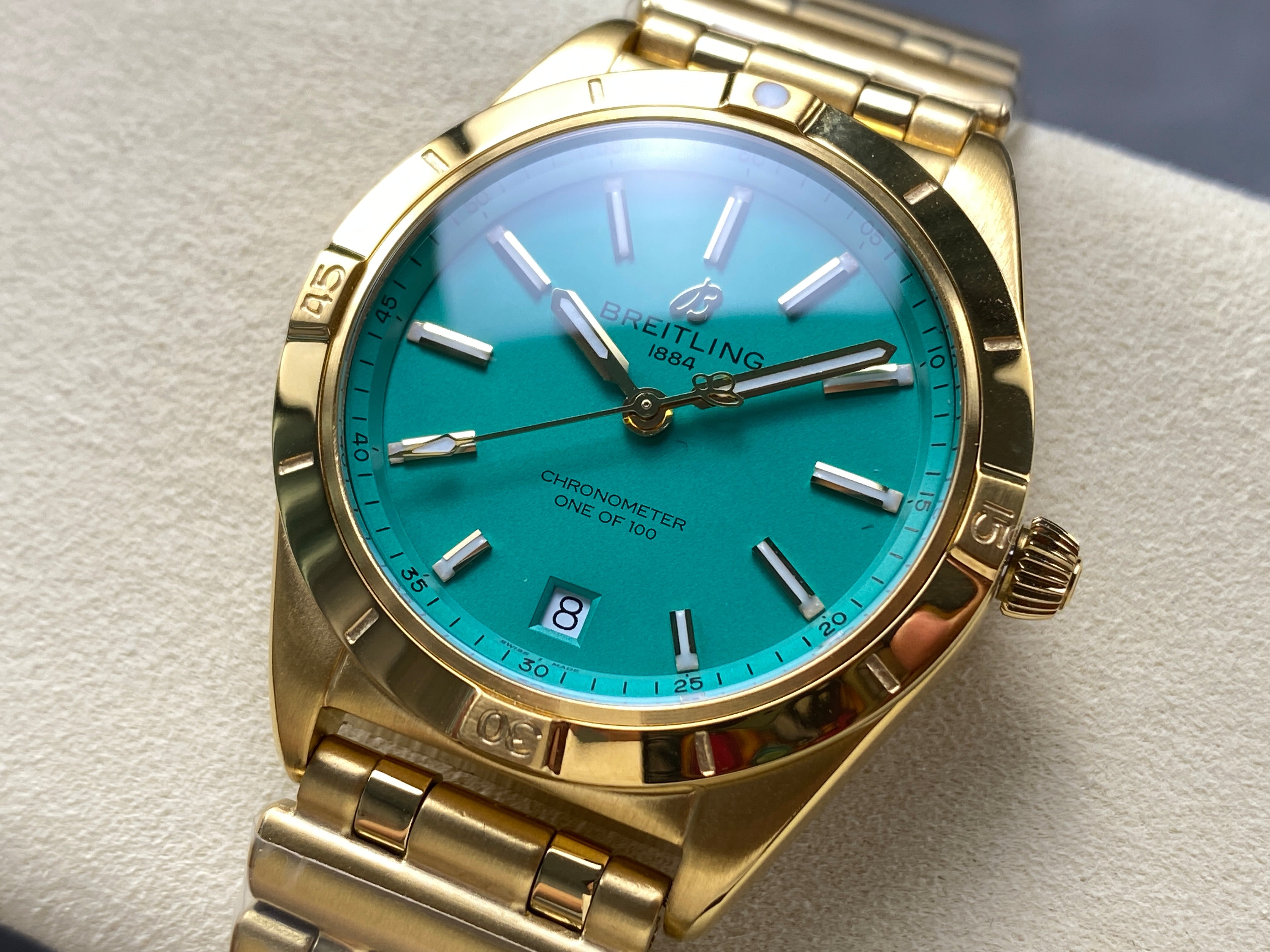 CHRONOMAT AUTOMATIC 36 VICTORIA BECKHAM YELLOW GOLD CASE PEPPERMINT DIAL