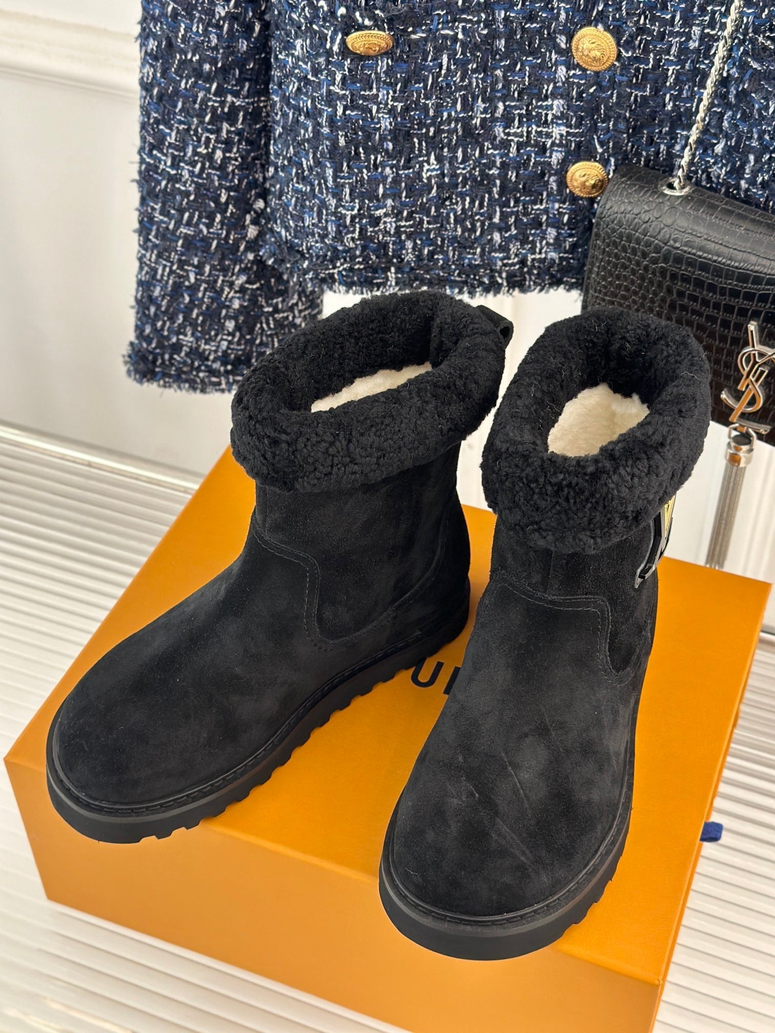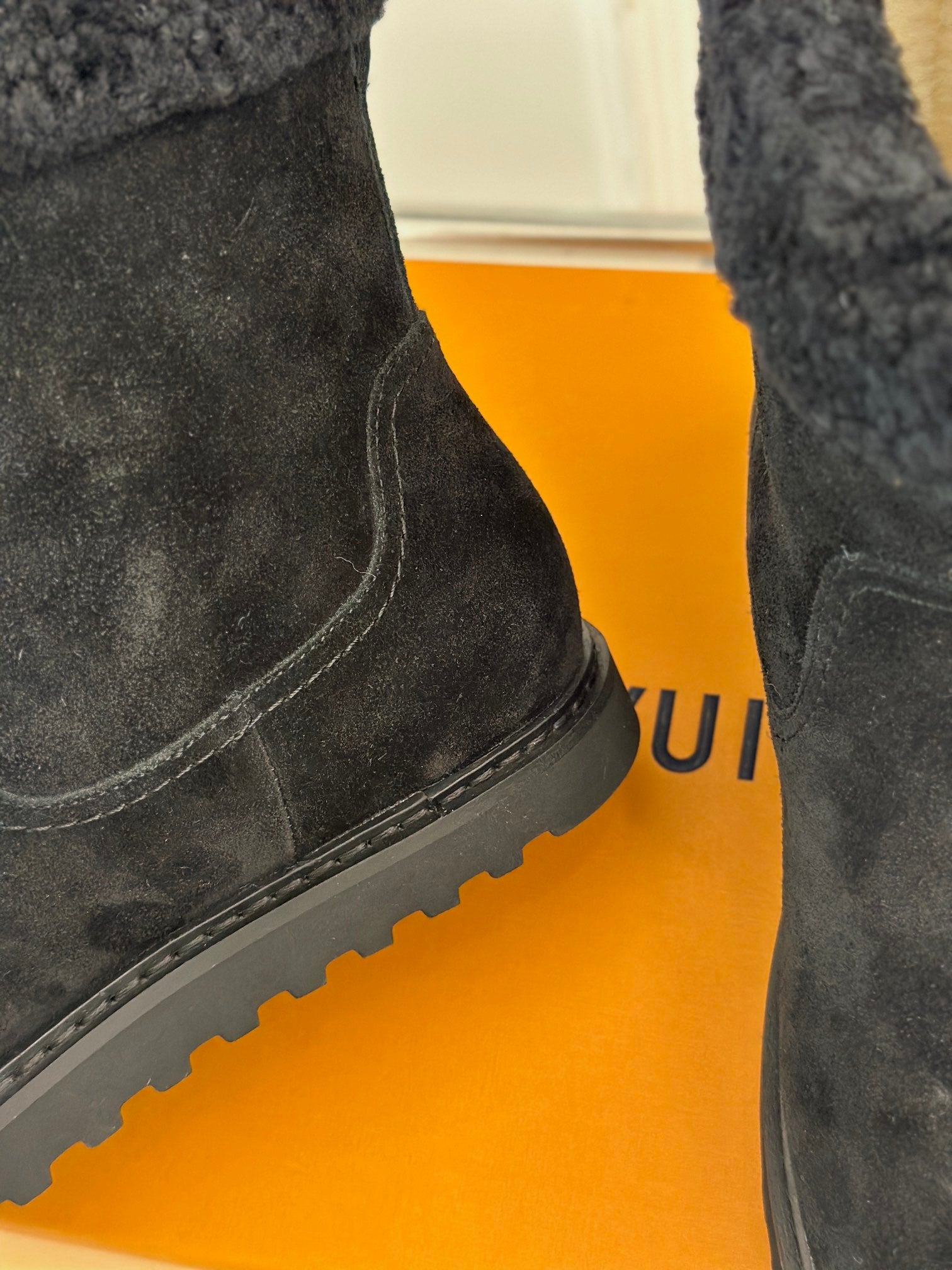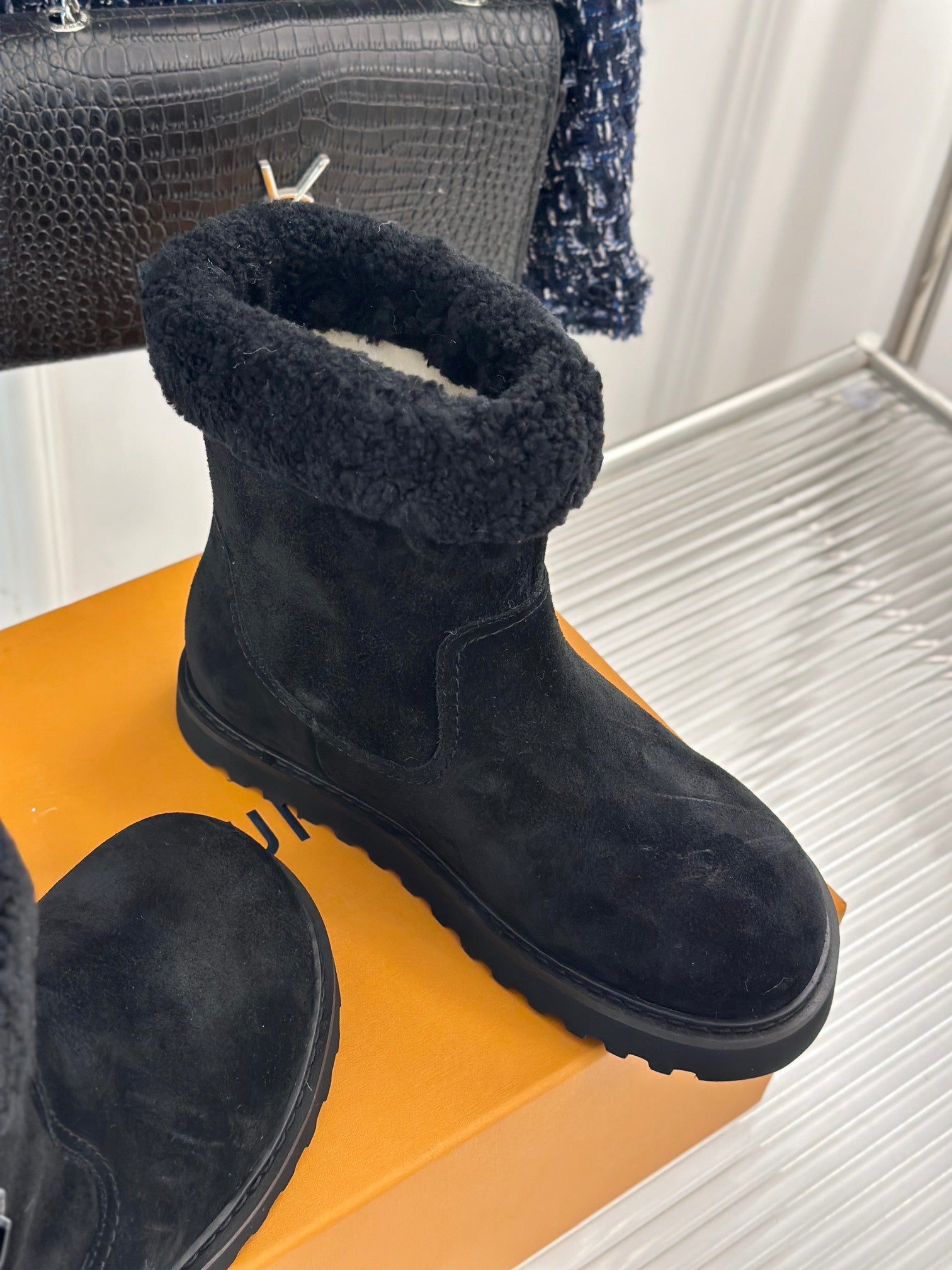 CHUNKY SOLE SNOW BOOTS IN BLACK SUEDE AND WOOL