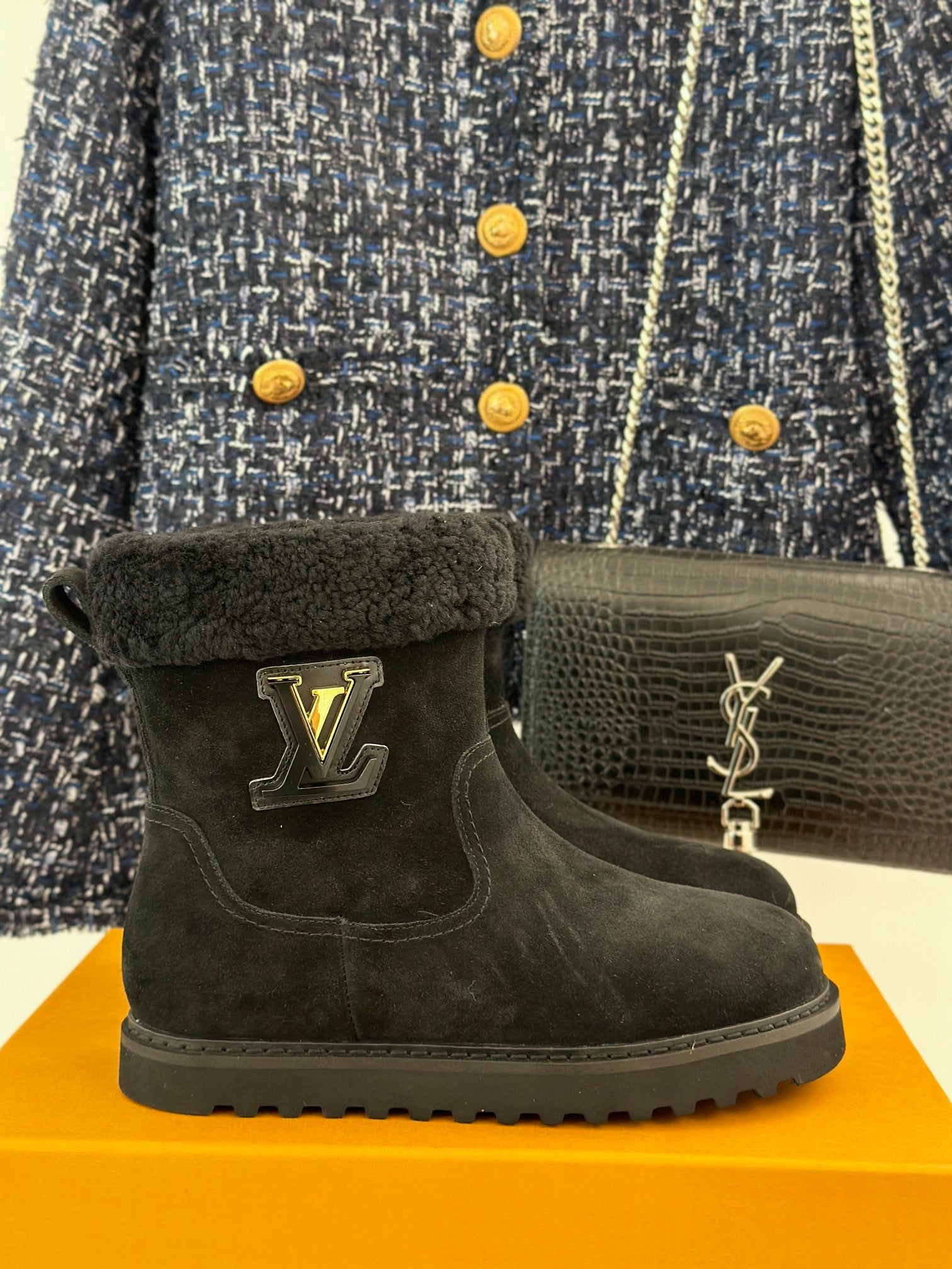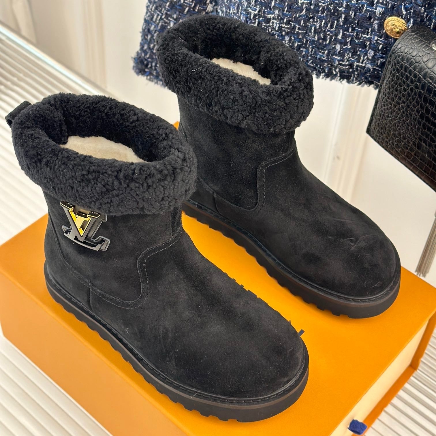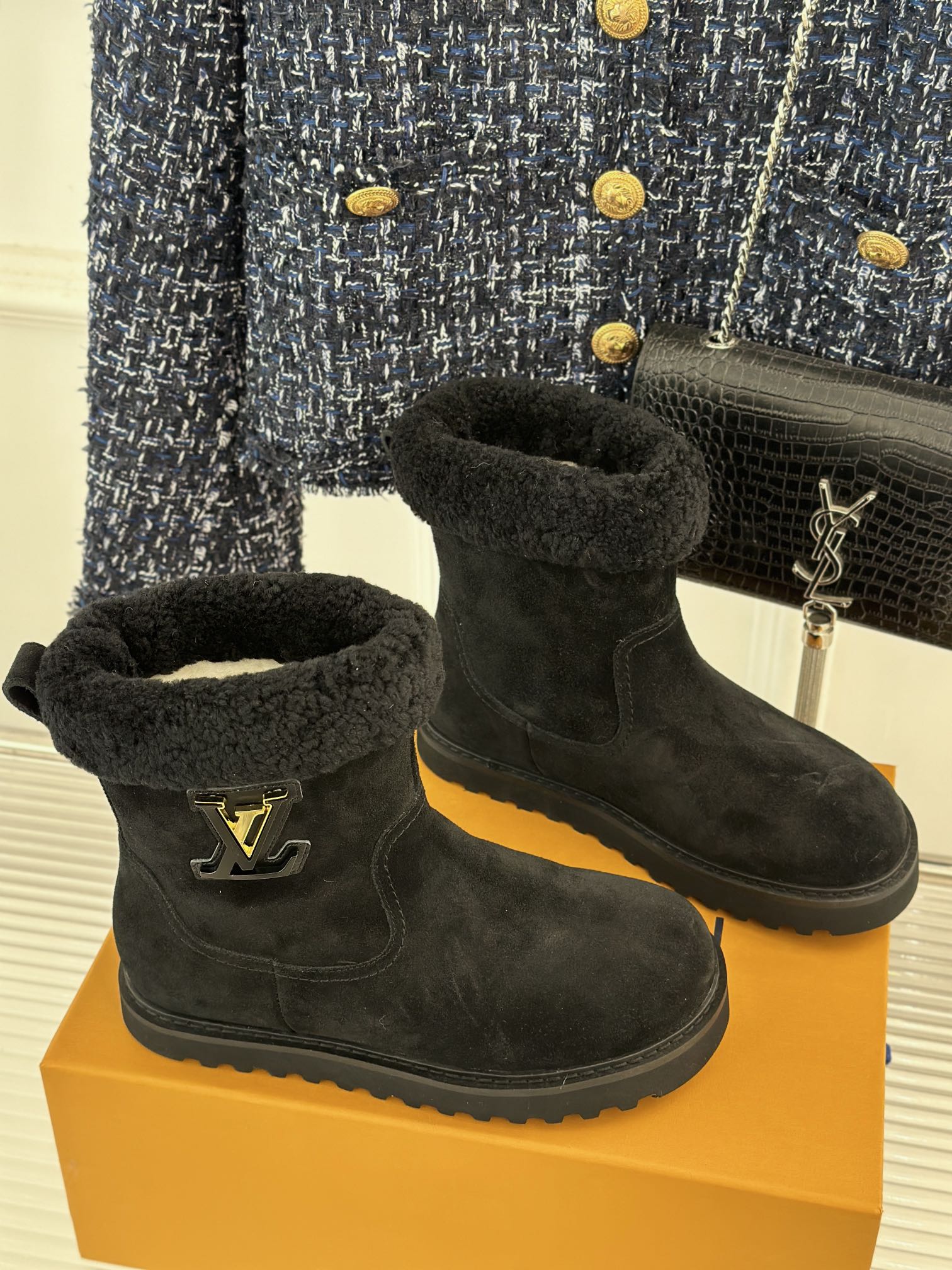 CHUNKY SOLE SNOW BOOTS IN BLACK SUEDE AND WOOL