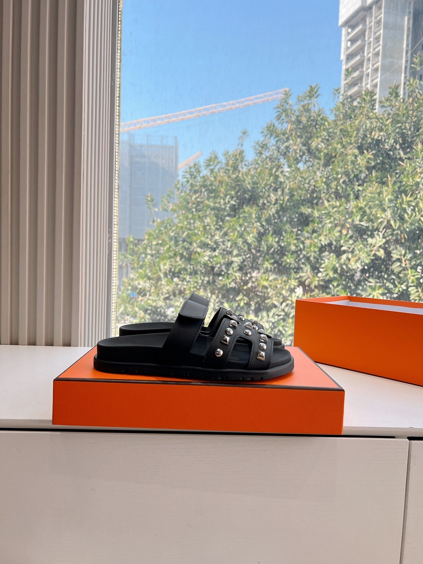 CHYPRE SANDAL IN BLACK CALFSKIN WITH STUDS