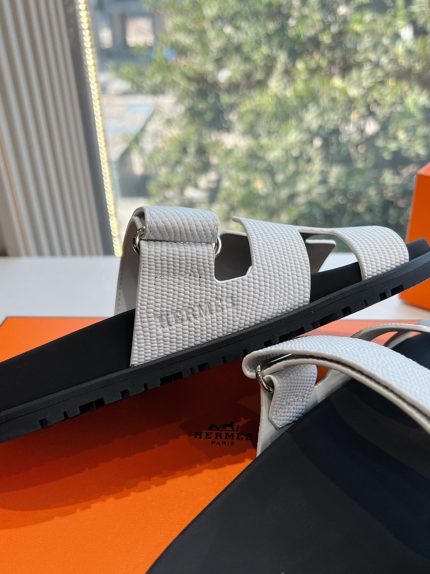 CHYPRE SANDAL IN WHITE SHINY GRAINED CALFSKIN