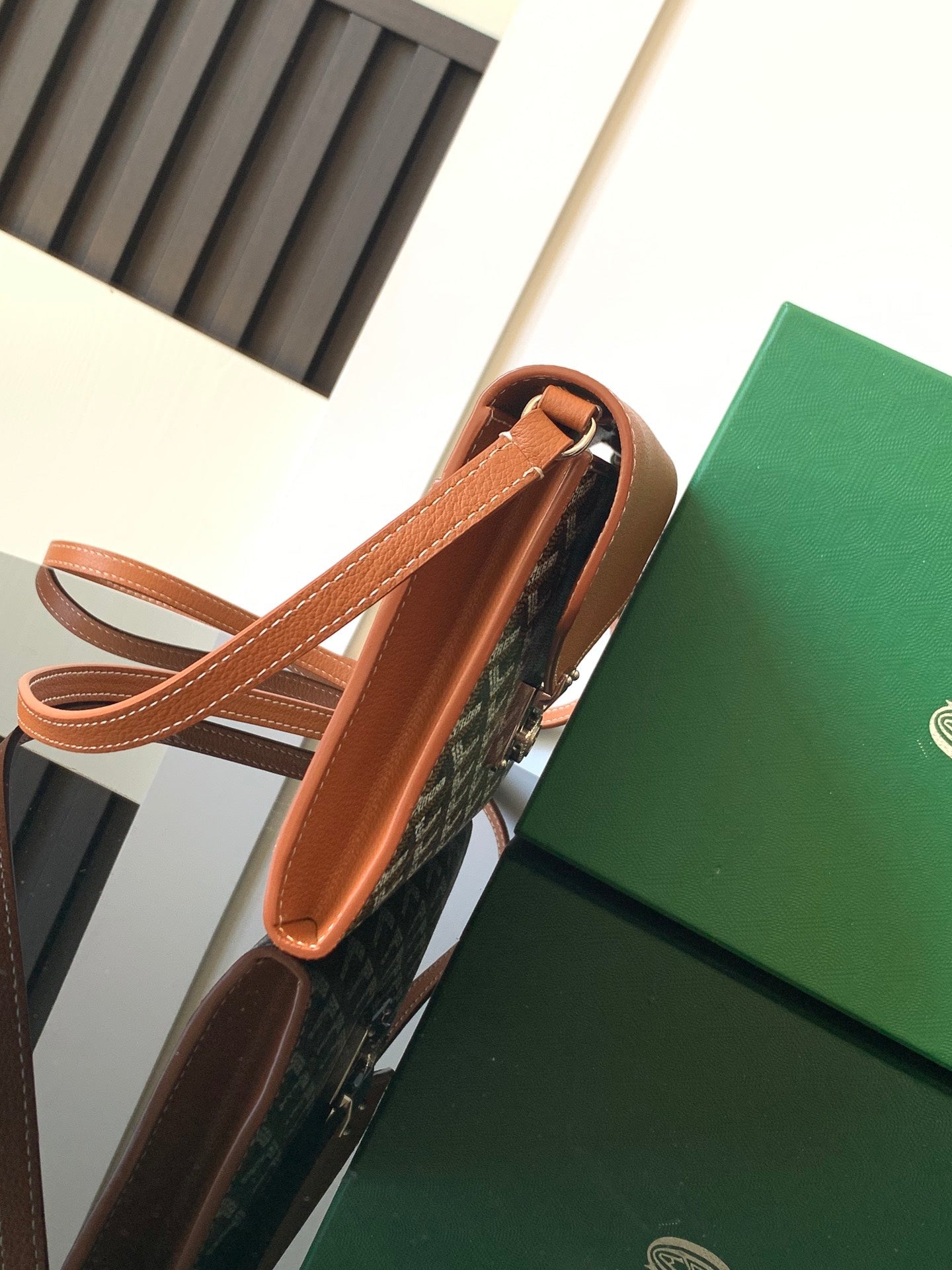 CHYPRE WALLET-POUCH 21 IN BLACK GOYARDINE CANVAS AND TAN CALFSKIN