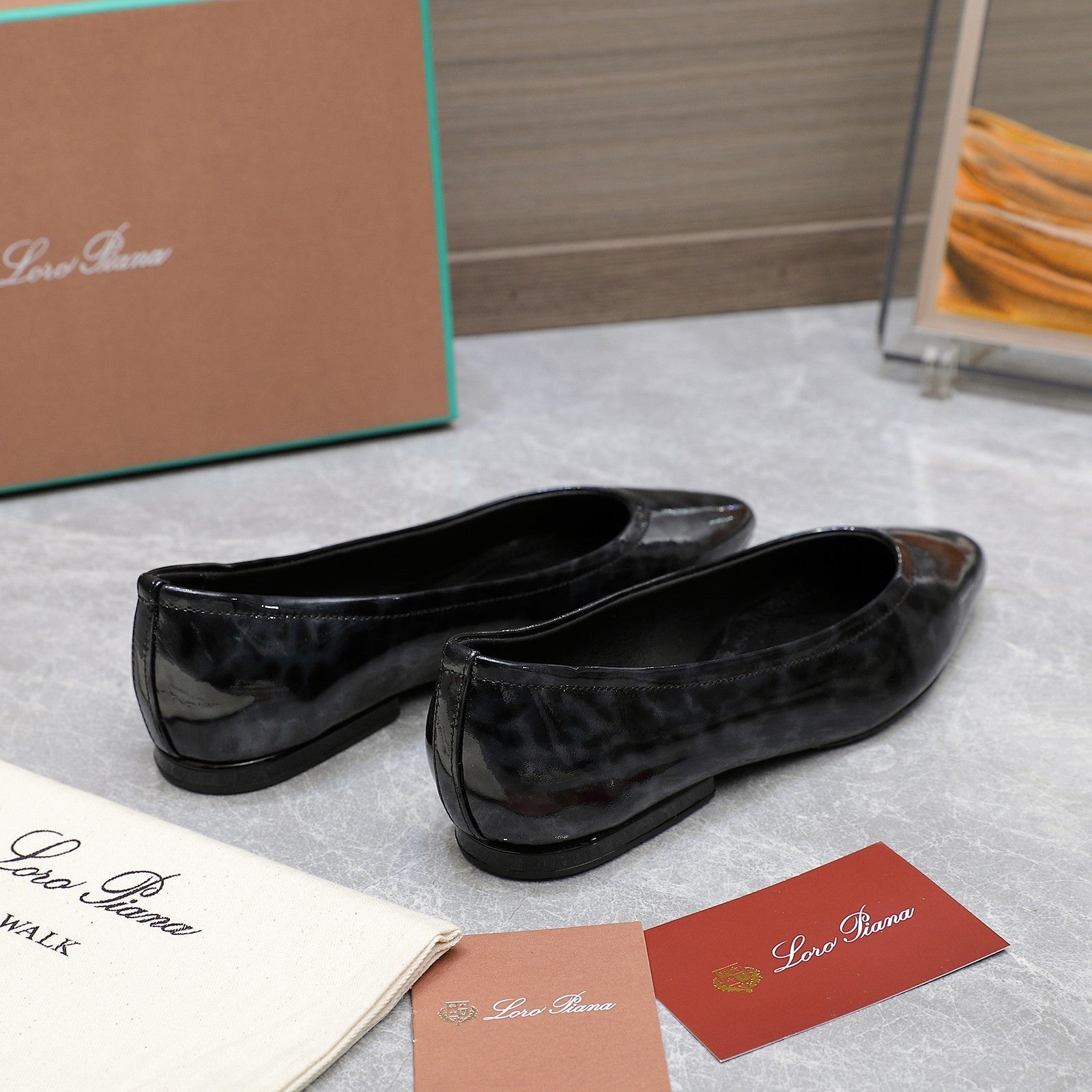 CLASSIC BALLET SHOES IN BLACK LEOPARD GLOSSY LEATHER