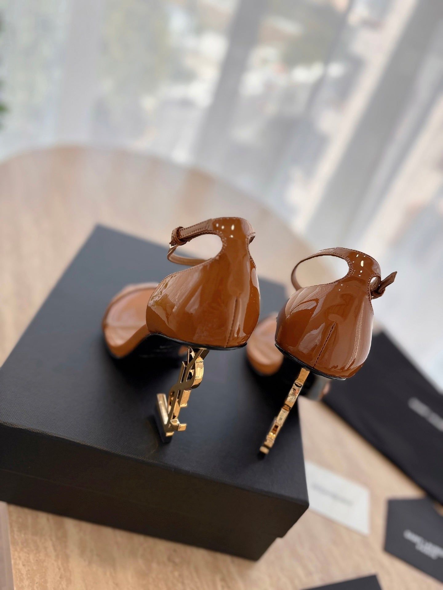 CLASSIC HIGH HEELS 10 CM IN BRONZE BROWN PATENT CALFSKIN