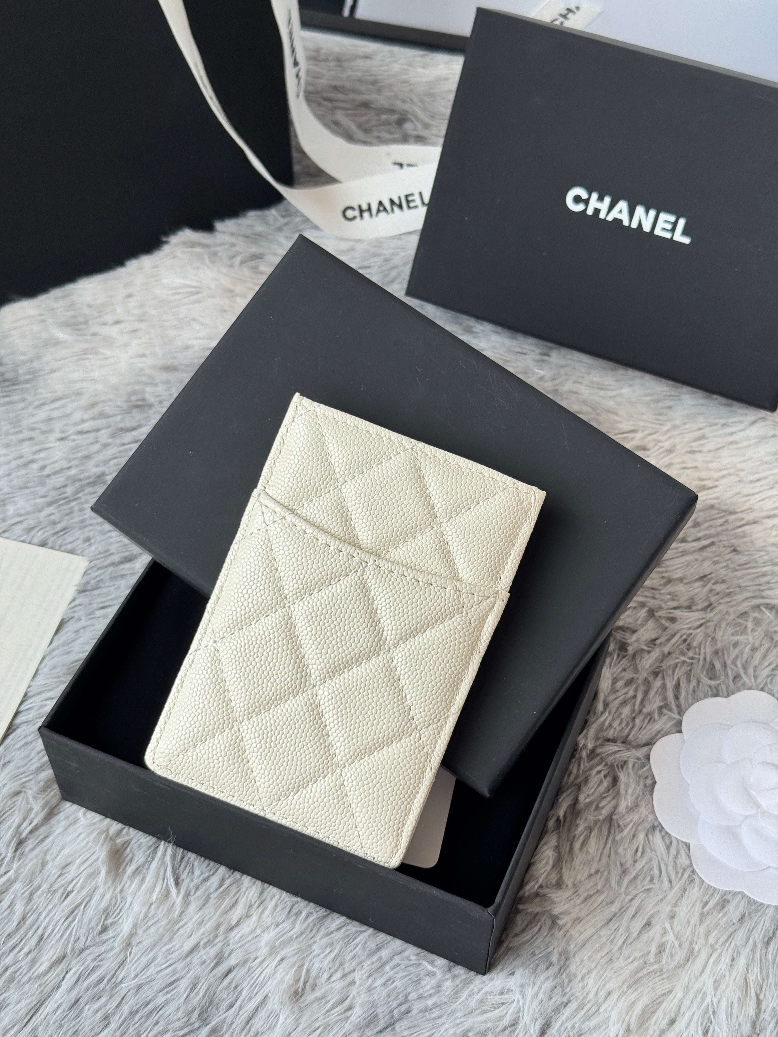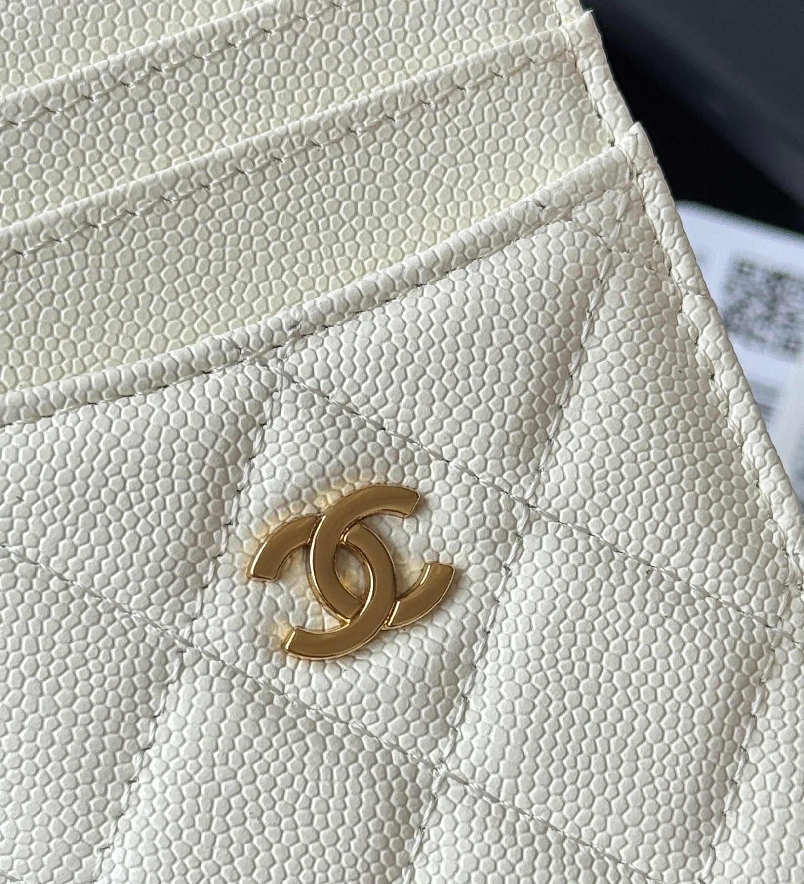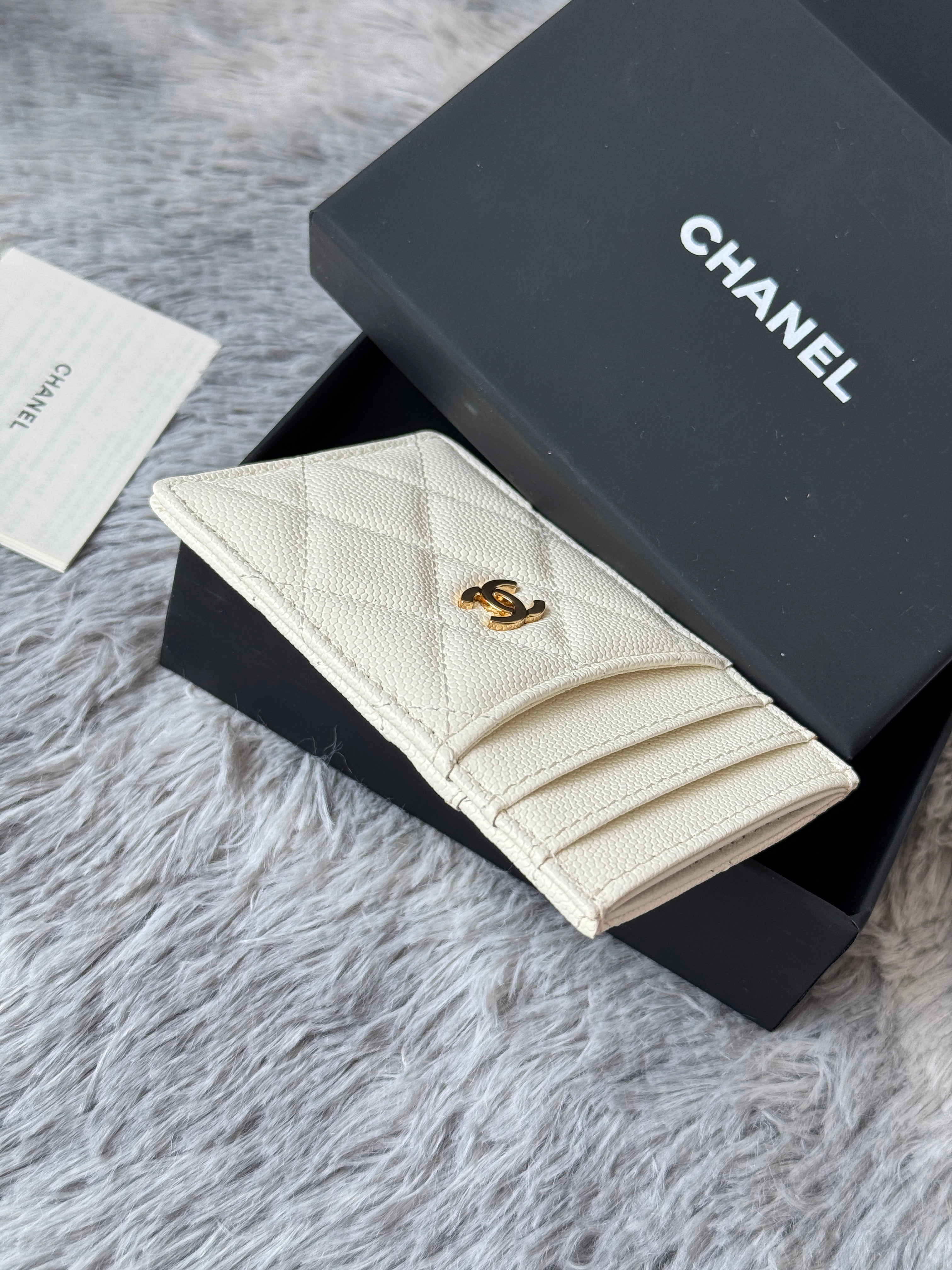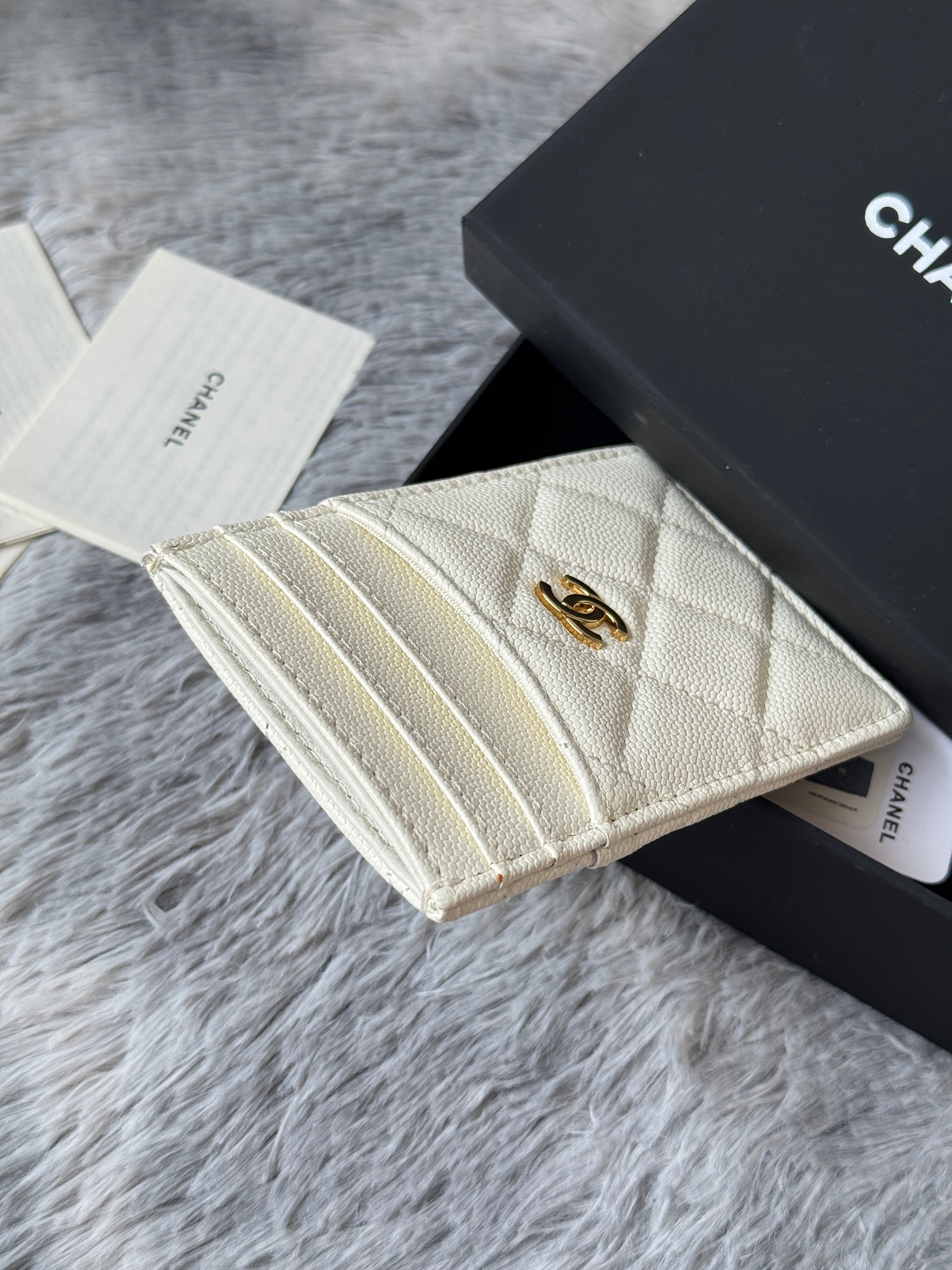 CLASSIC VERTICAL CARD HOLDER 14 IN WHITE GRAINED CALFSKIN GOLD-TONE METALLIC