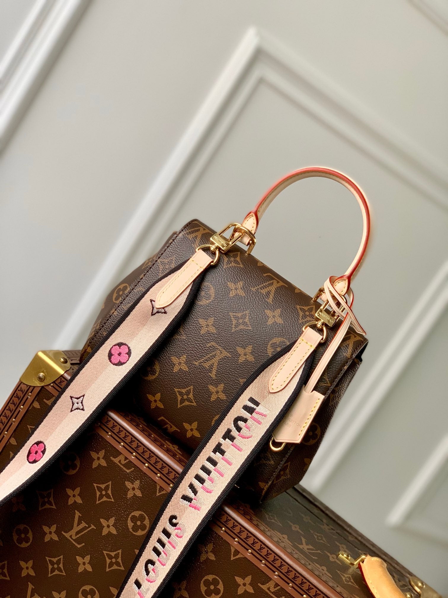 CLUNY BB MINI HANDBAG 20 IN BROWN MONOGRAM CALFSKIN BEIGE BLACK EMBROIDERED LOGO CANVAS