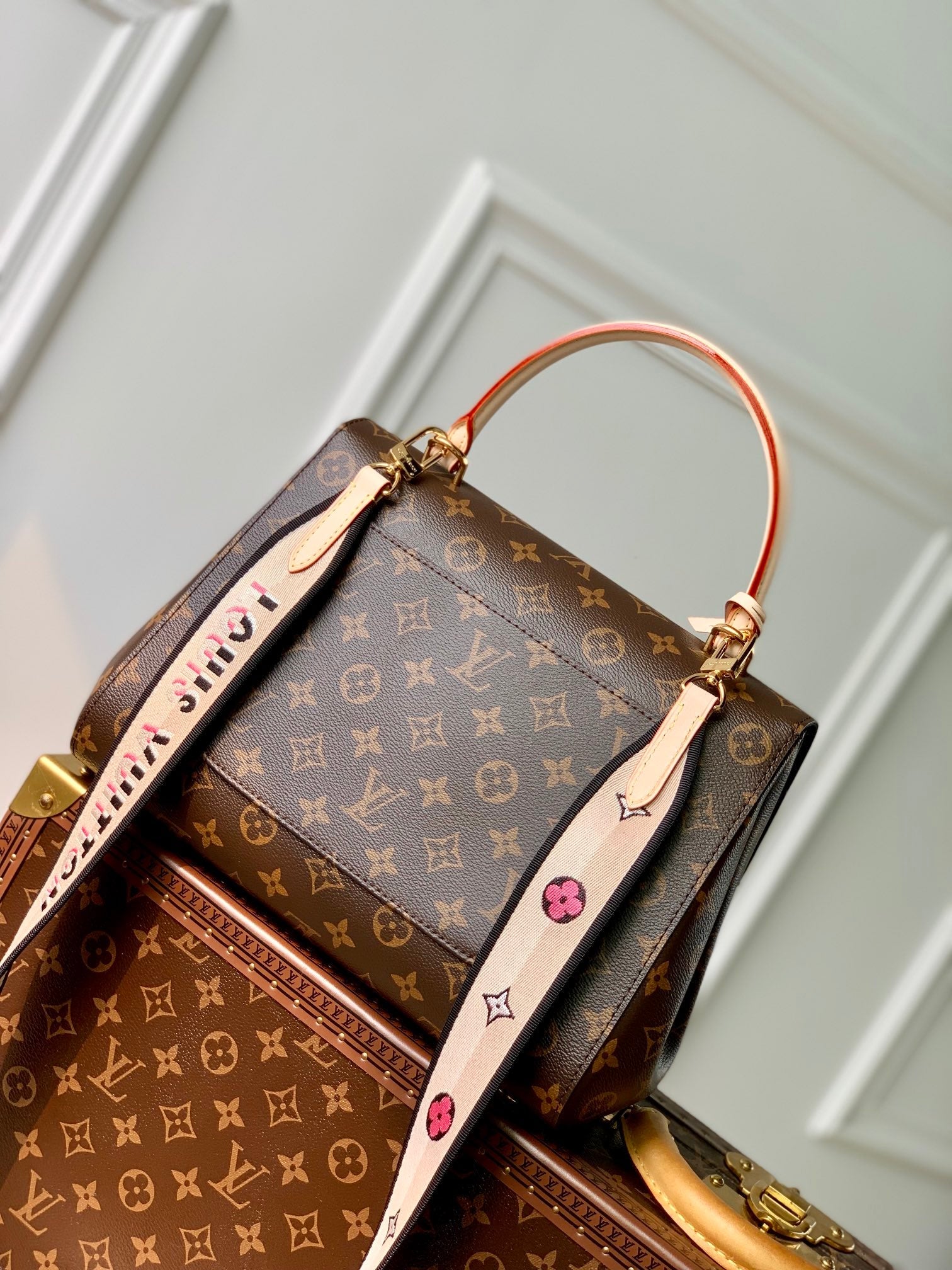 CLUNY MM HANDBAG 33 IN BROWN MONOGRAM CALFSKIN BEIGE BLACK EMBROIDERED LOGO CANVAS