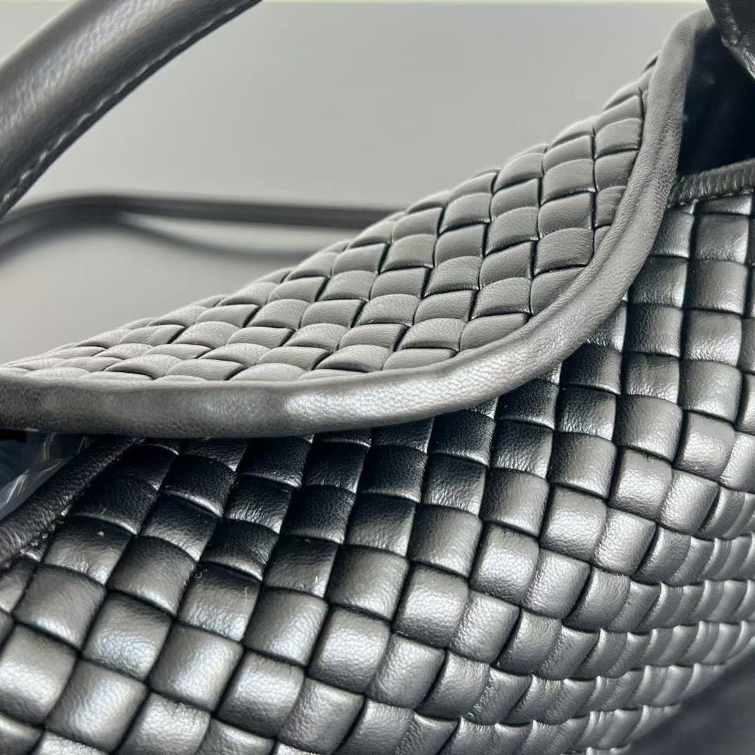 COBBLE TOP HANDLE BAG 23 IN BLACK LAMBSKIN