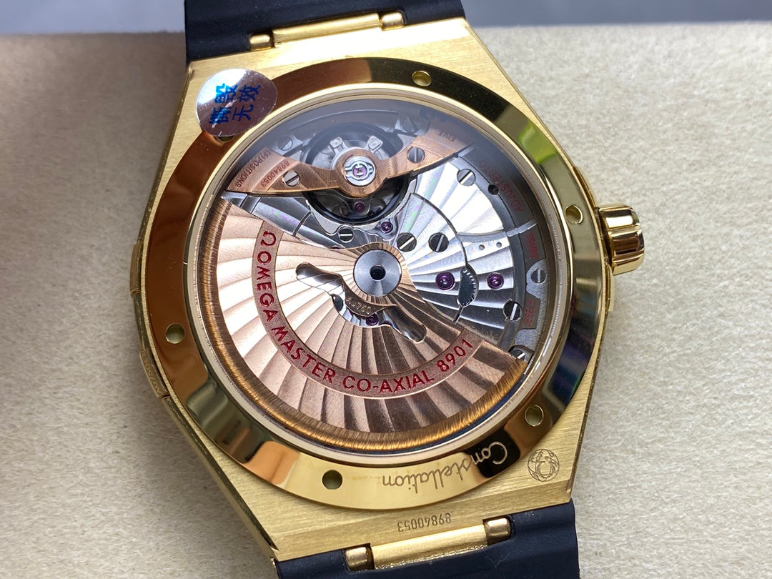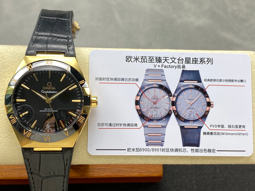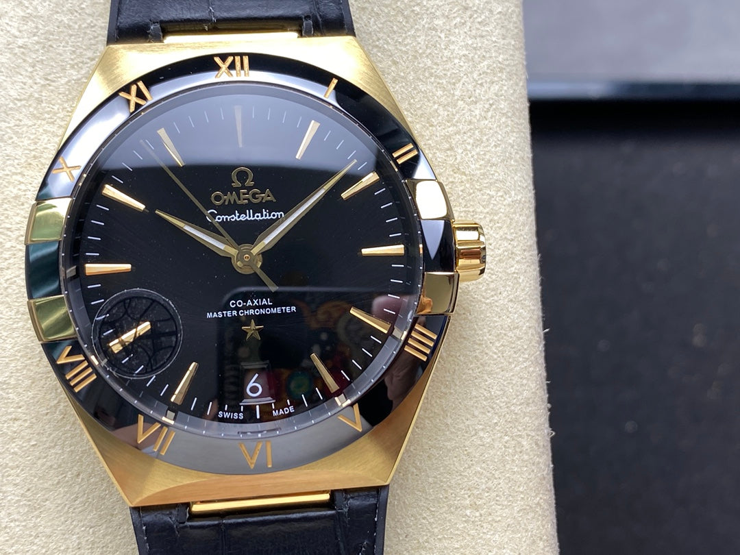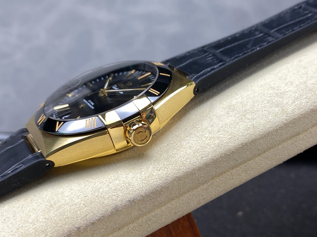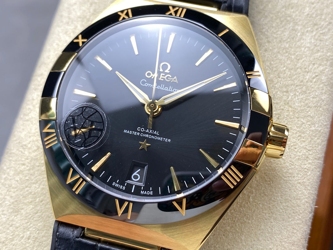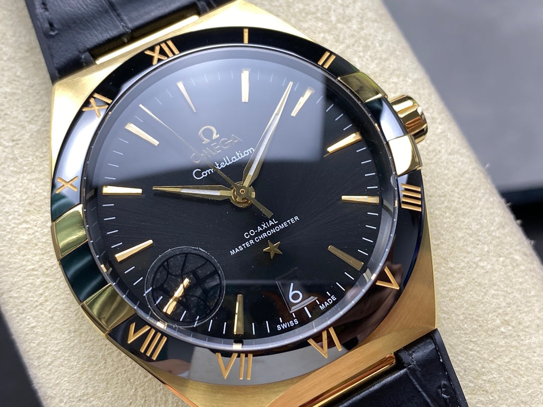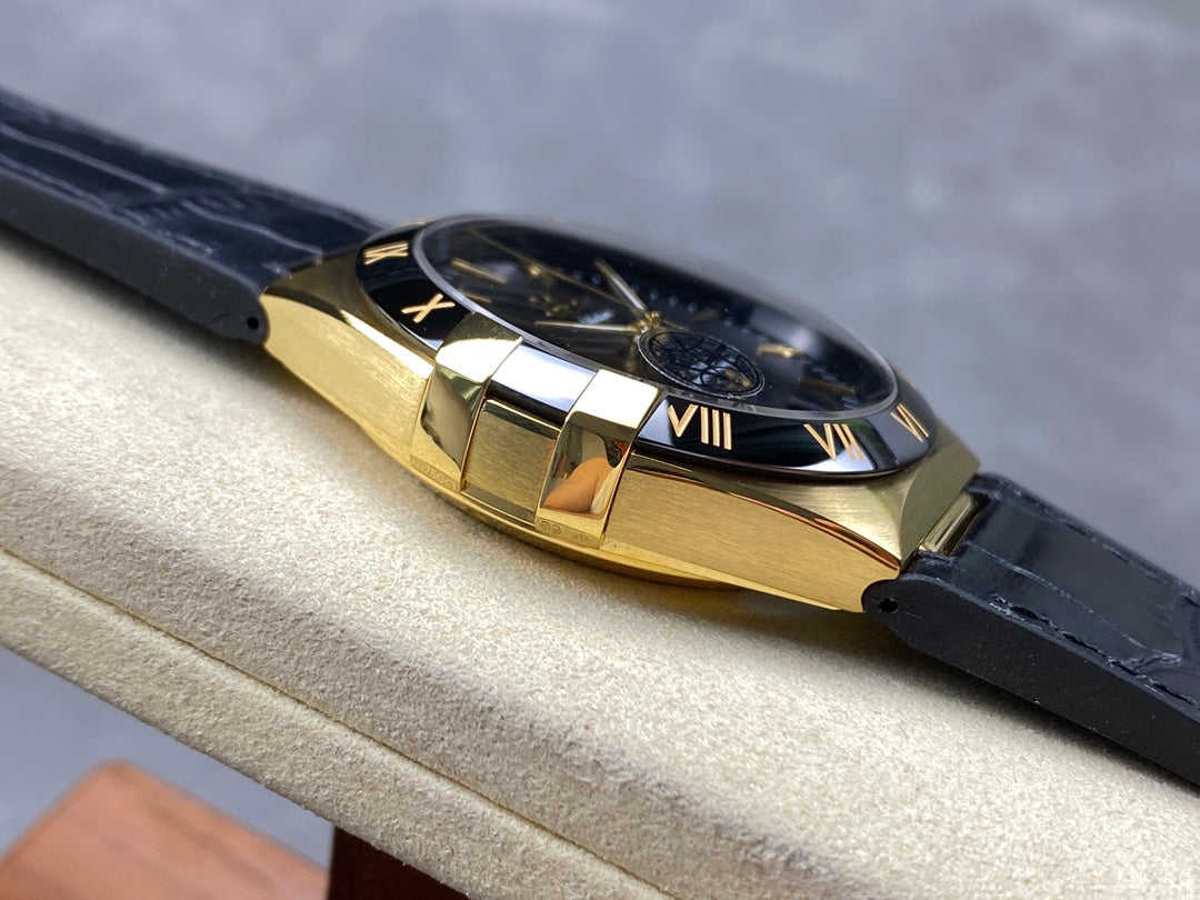 CONSTELLATION 39 MM WATCH YELLOW GOLD CASE WITH BLACK LEATHER STRAP
