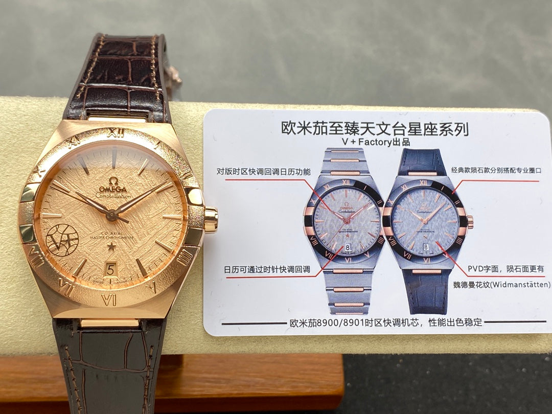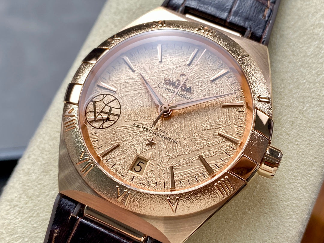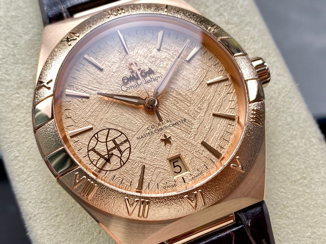 CONSTELLATION 39 MM WATCH YELLOW GOLD CASE WITH HICKORY BROWN LEATHER STRAP