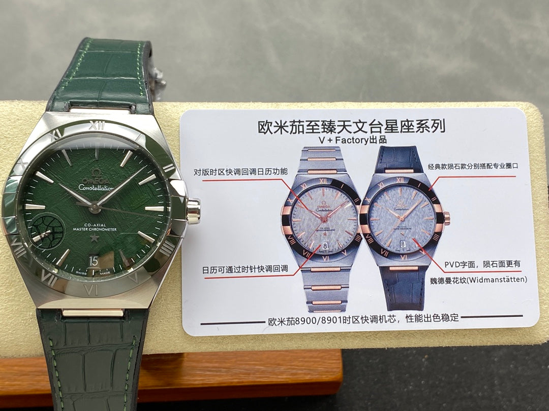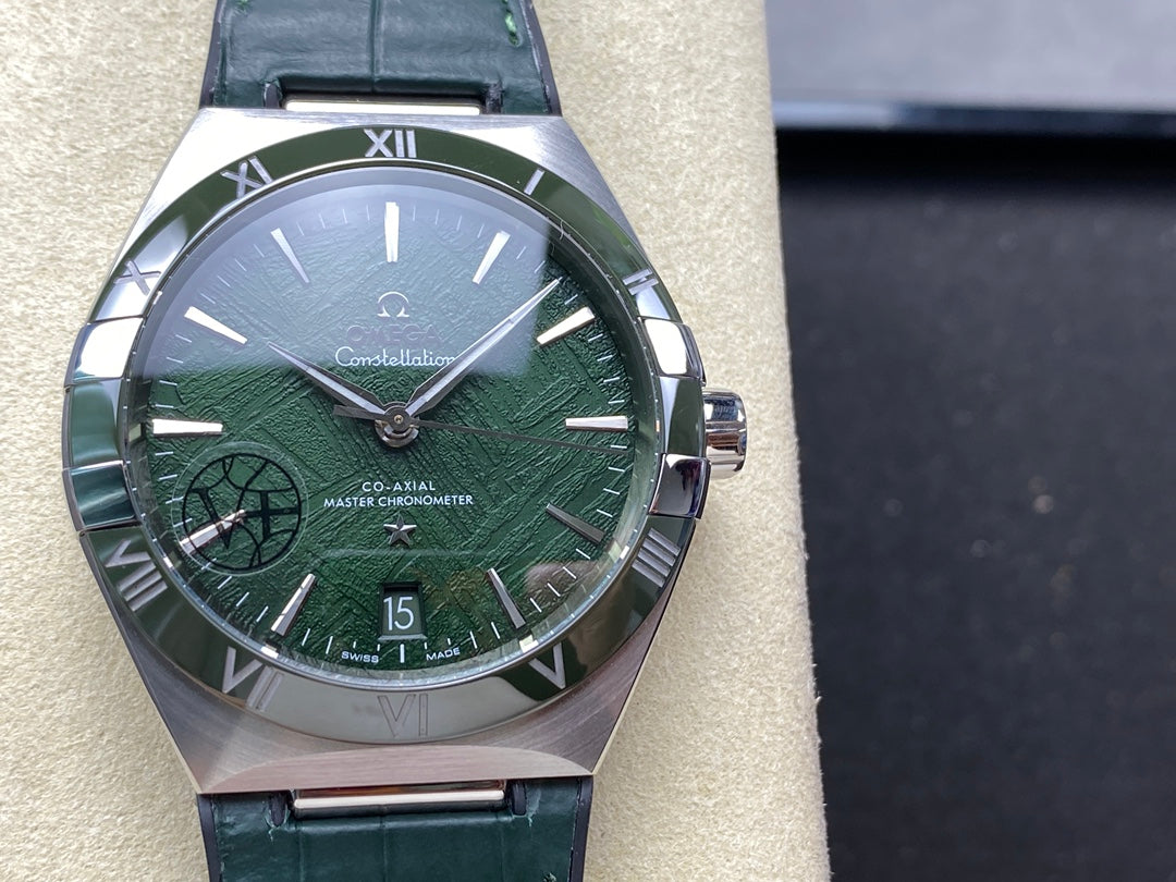 CONSTELLATION 41 MM SILVER CASE WITH GREEN FOREST DIAL AND LEATHER STRAP