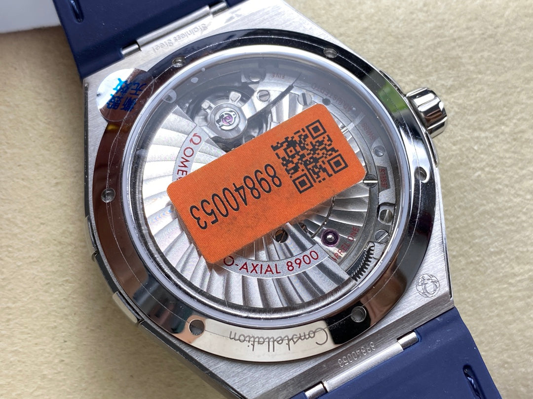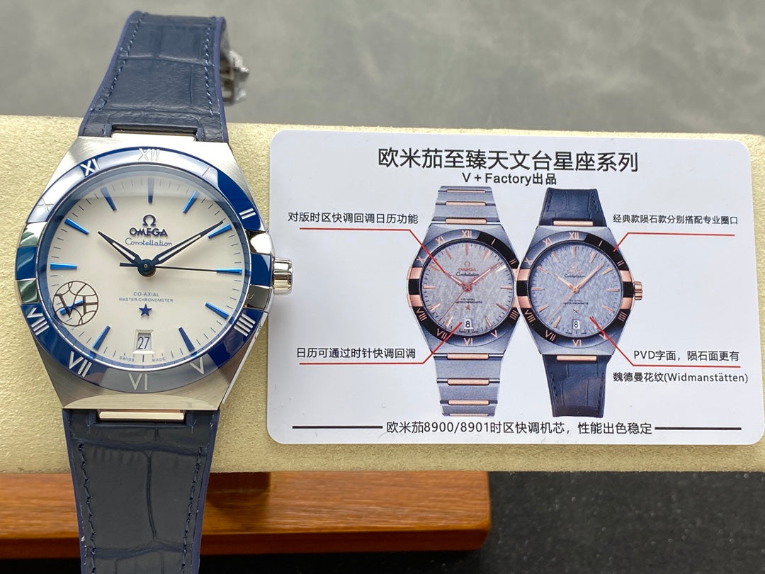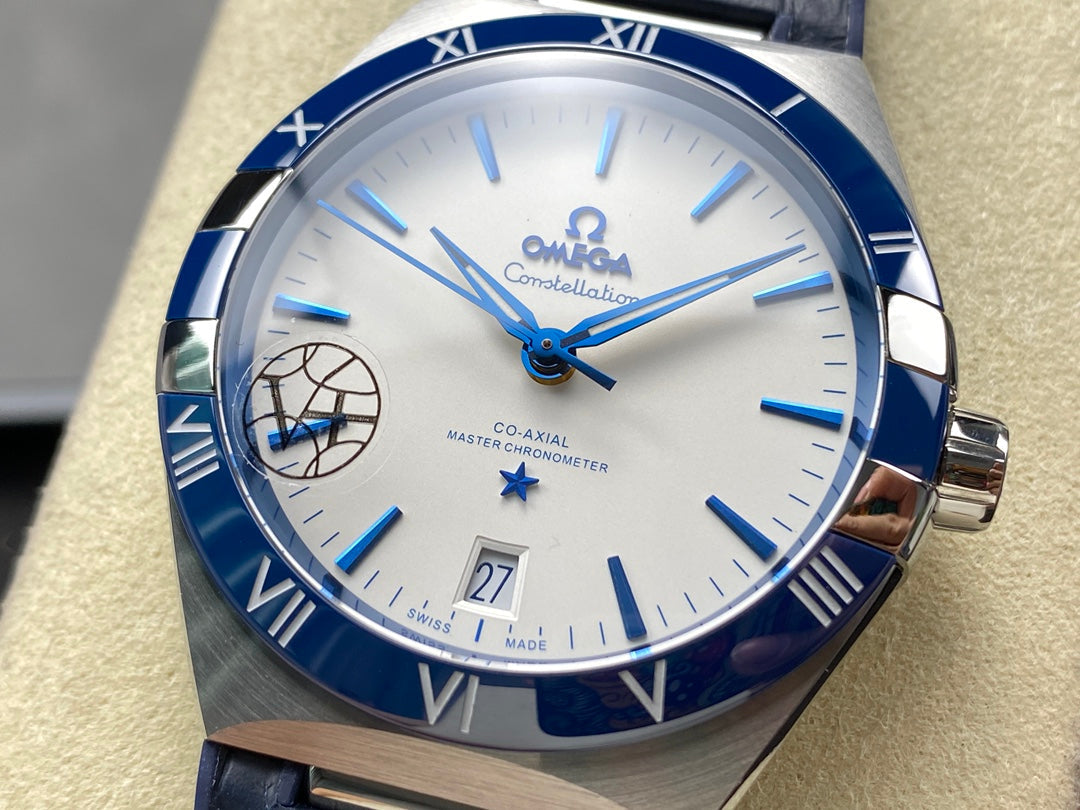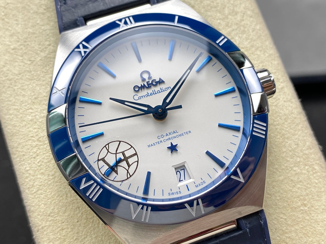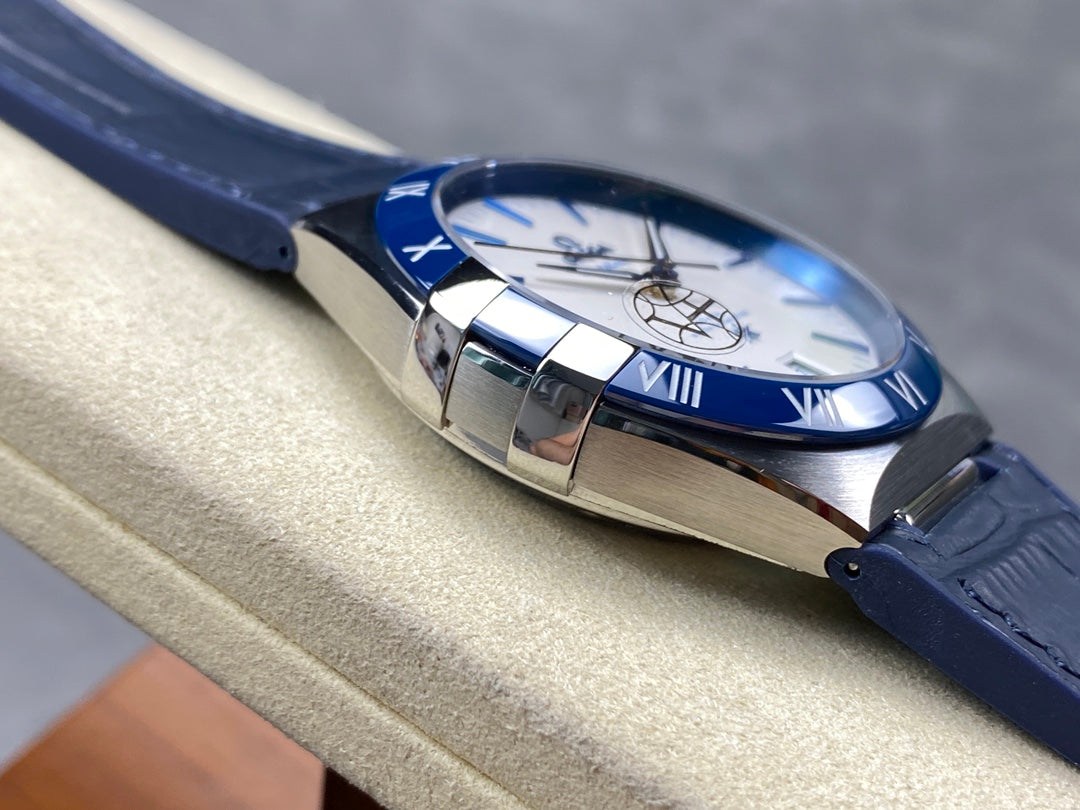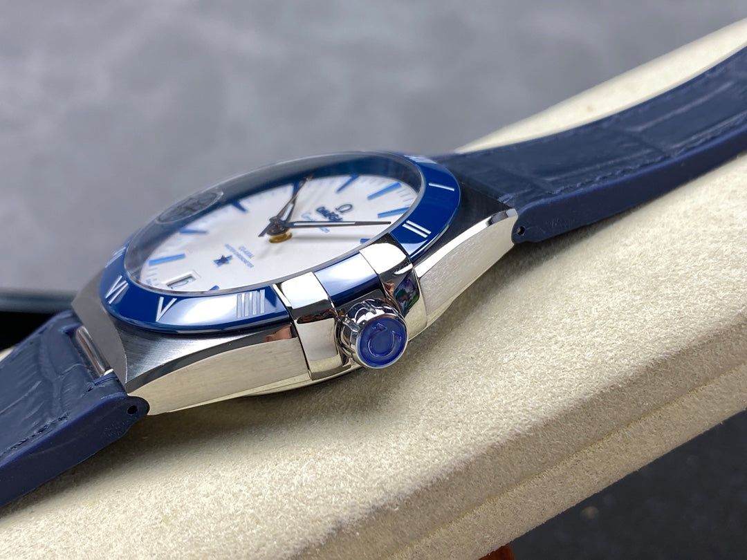 CONSTELLATION 41 MM STEEL CASE WITH WHITE DIAL AND NAVY BLUE LEATHER STRAP
