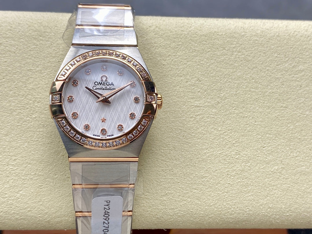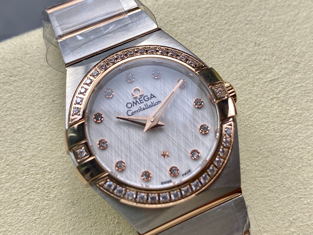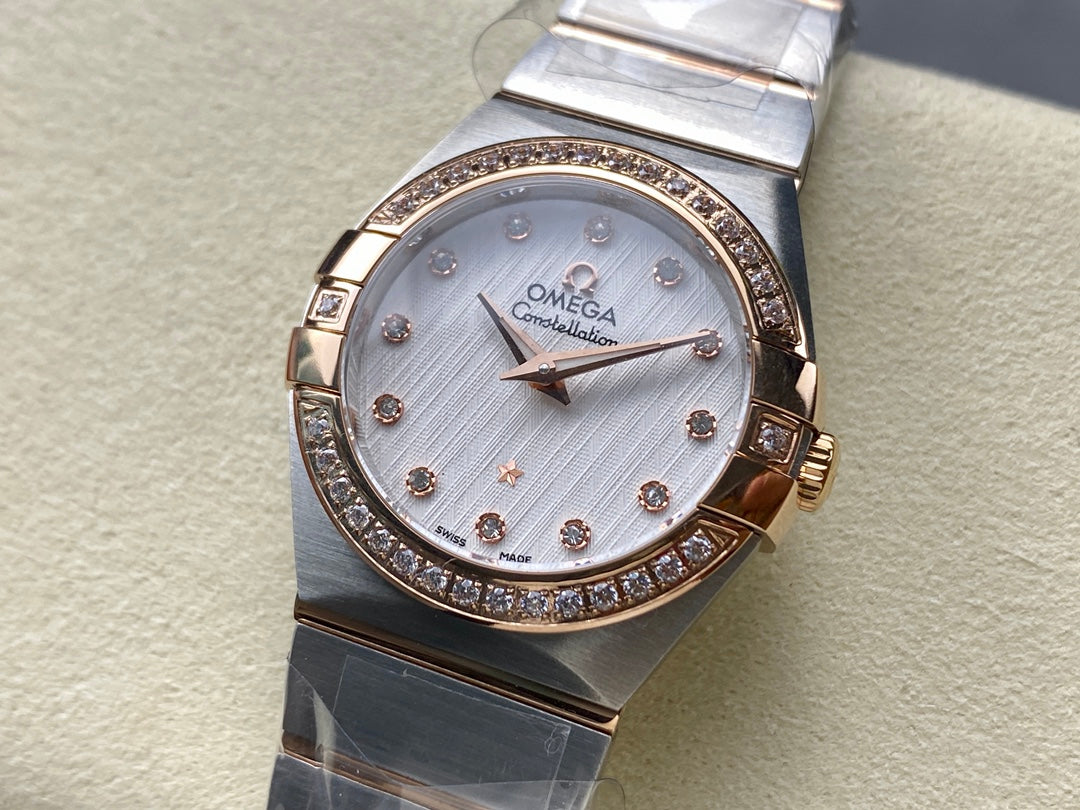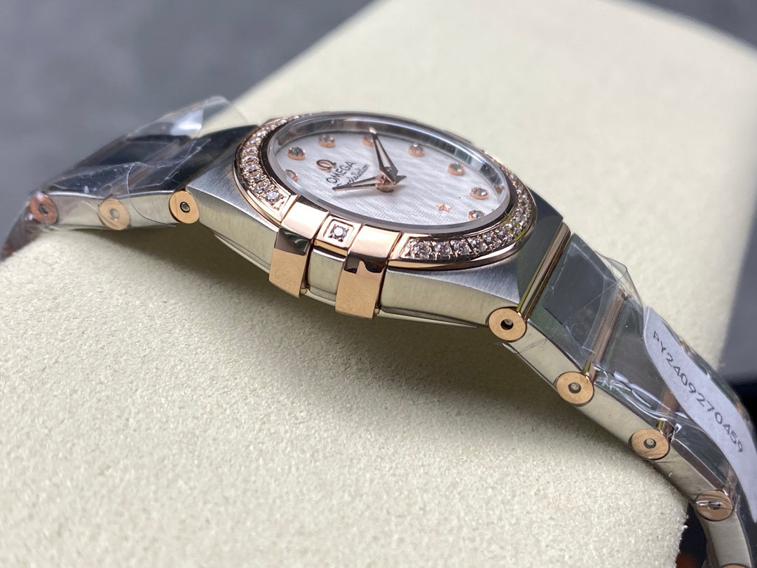 CONSTELLATION PETITE WATCH SILVER AND ROSE GOLD CASE WITH CRYSTALS