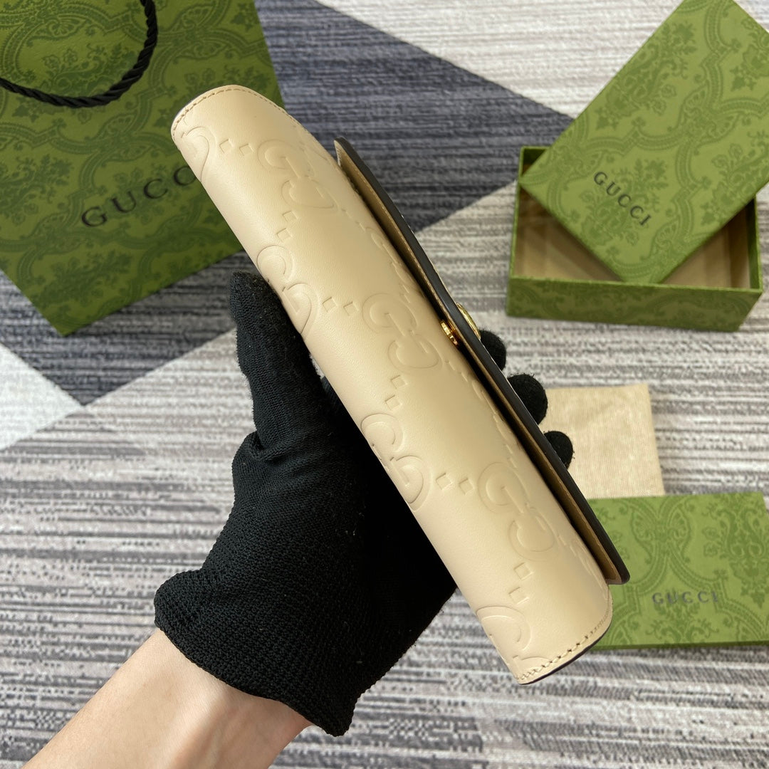 CONTINENTAL WALLET 19 IN LIGHT YELLOW EMBOSSED CALFSKIN GOLD HARDWARE
