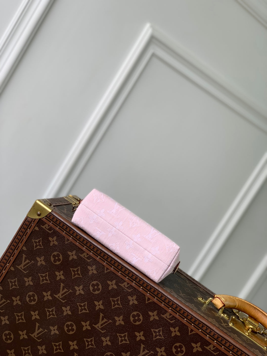 COSMETIC POUCH 19 IN PINK MONOGRAM DENIM GOLD HARDWARE