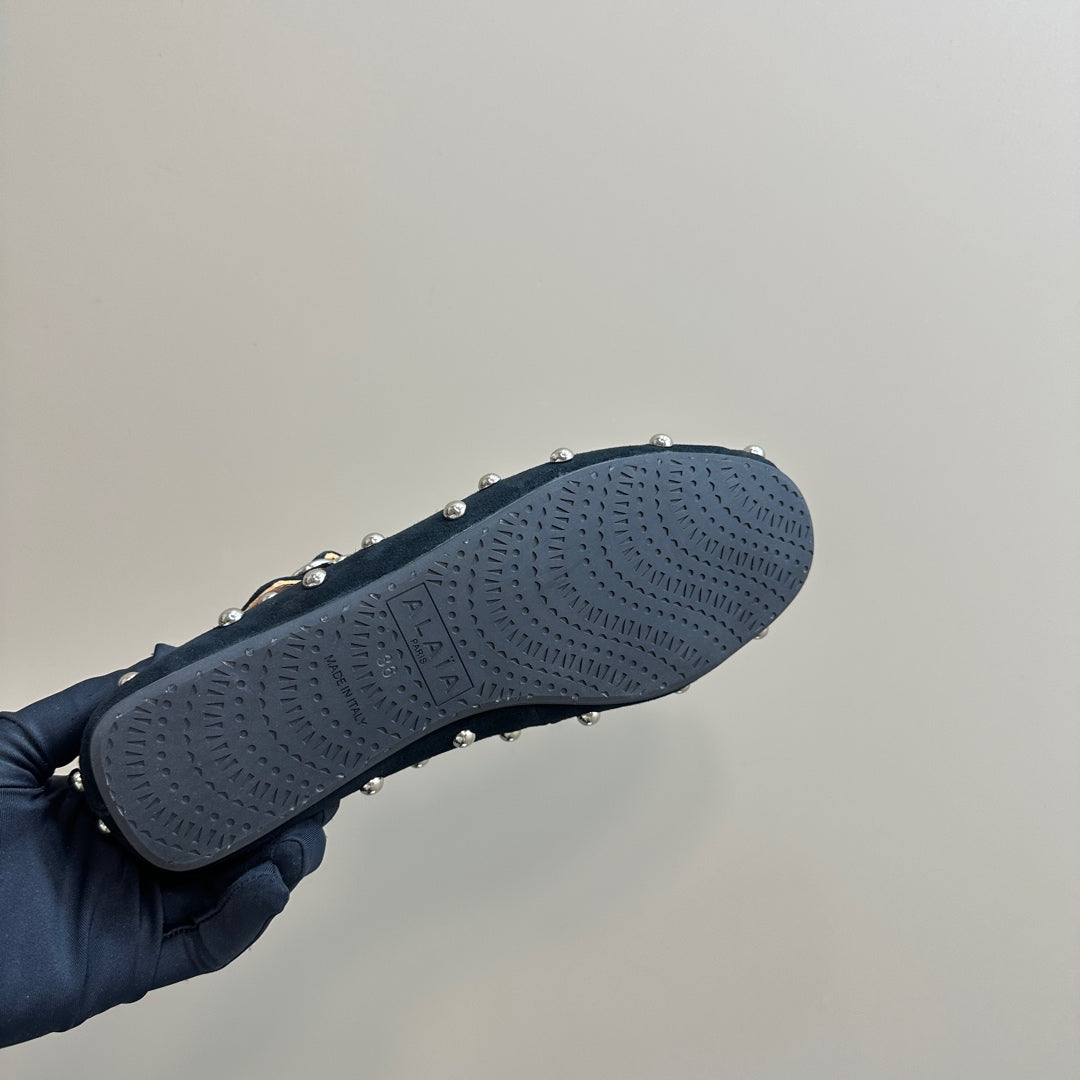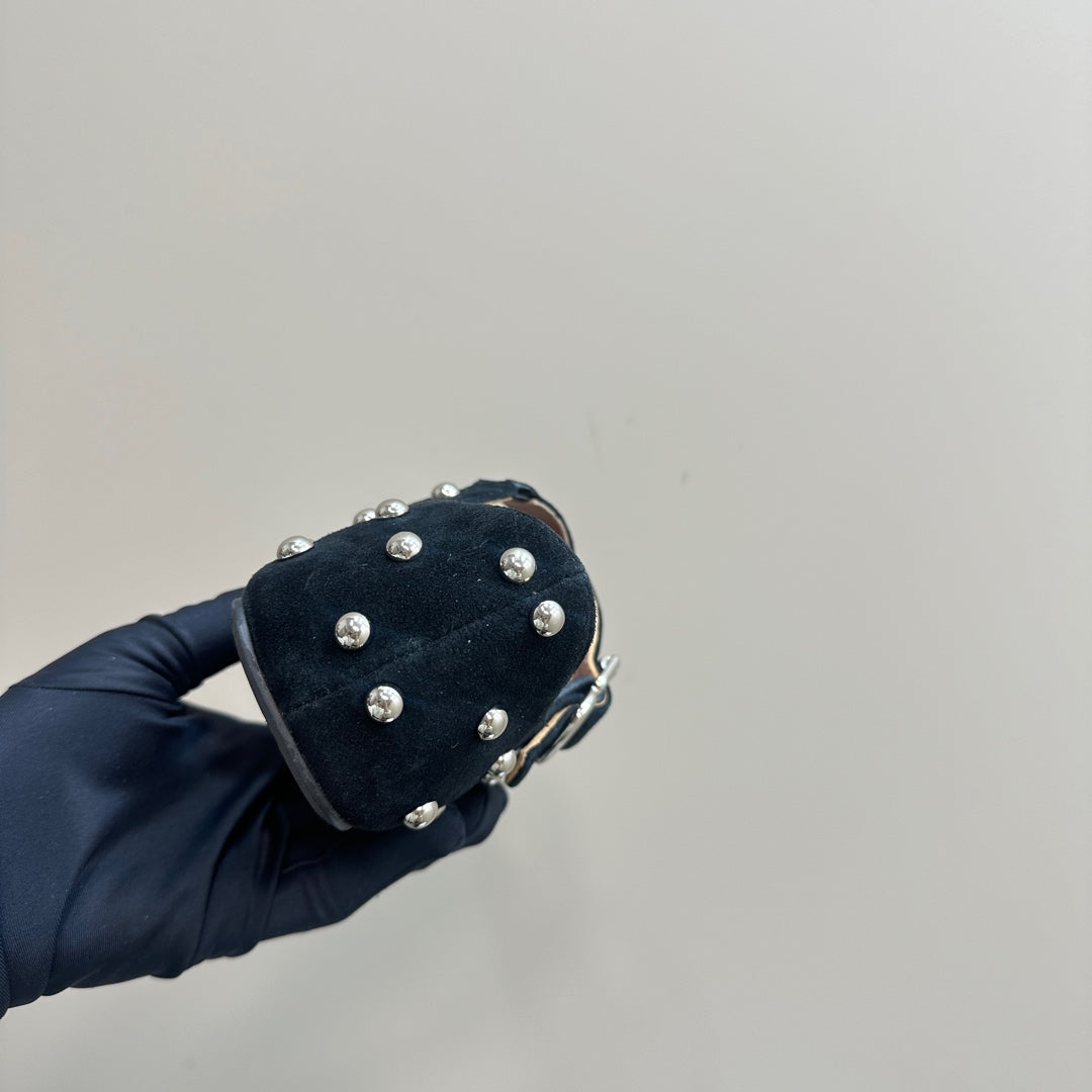 CRISS CROSS BALLET FLATS IN BLACK SUEDE WITH STUDS