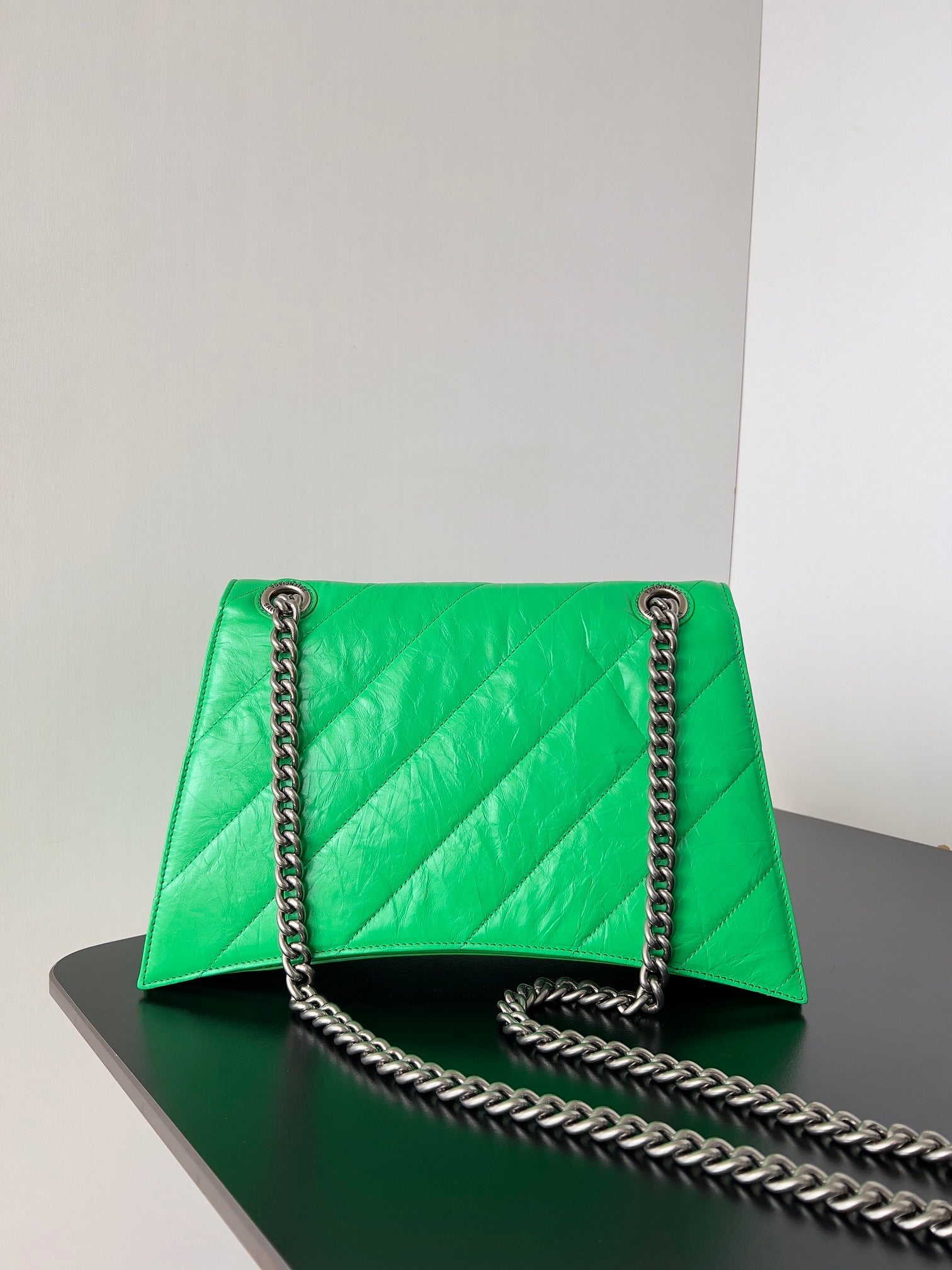 CRUSH CHAINED BAG 32 IN GREEN QUILTED CRUSHED CALFSKIN SILVER HARDWARE