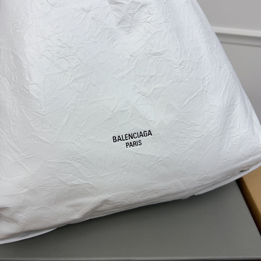CRUSH LARGE TOTE BAG 46 IN WHITE CRUSHED CALFSKIN SILVER HARDWARE