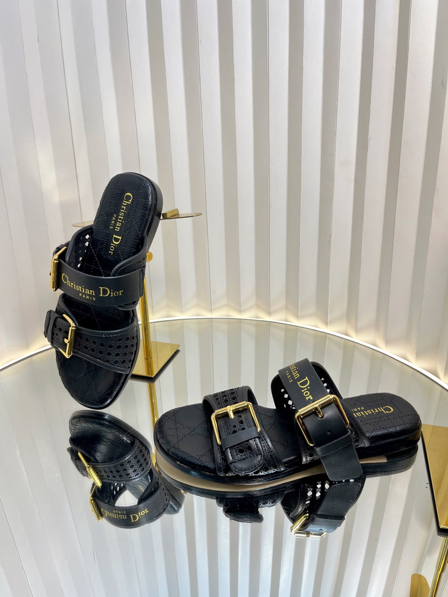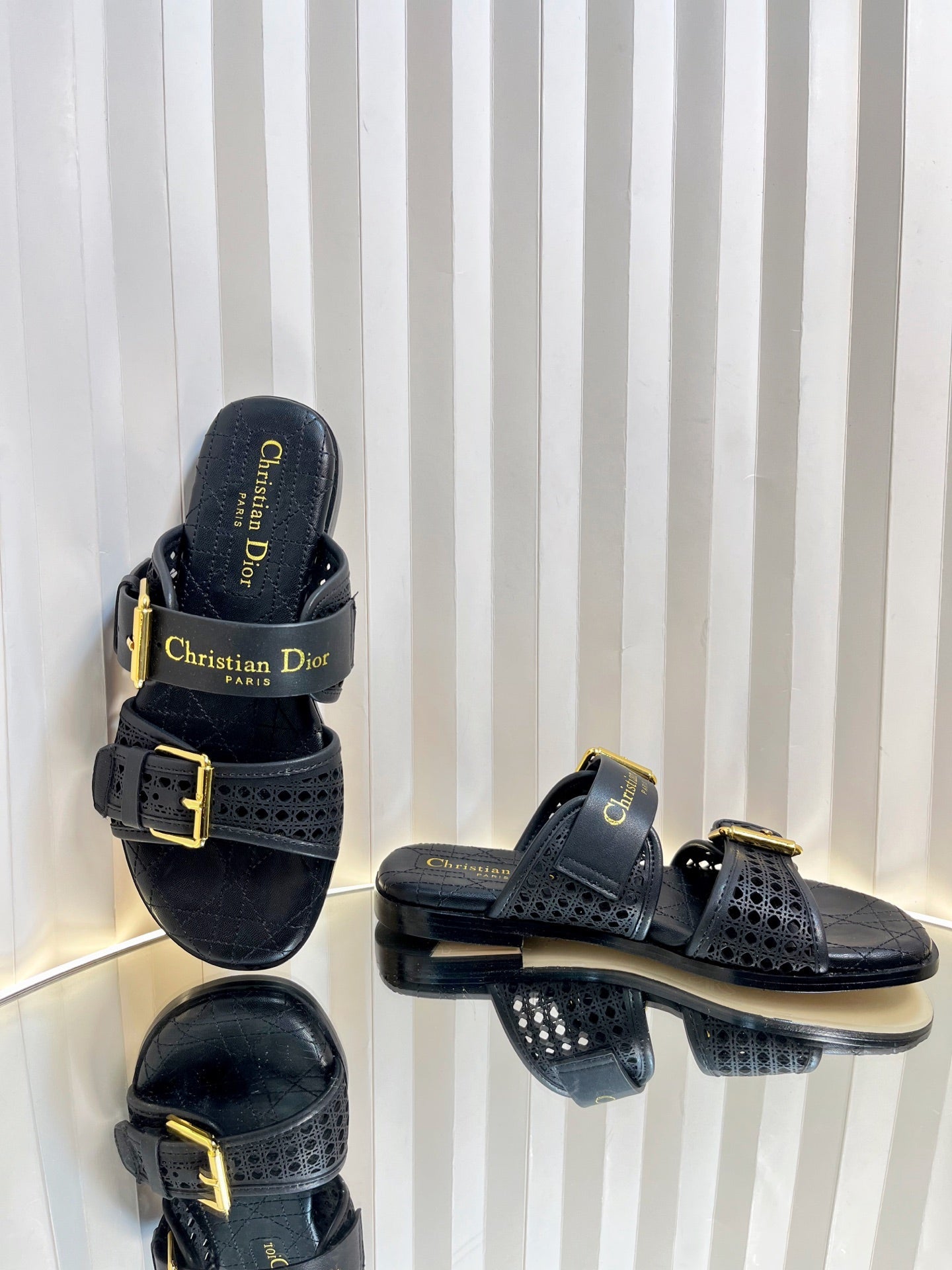 D-AVENUE SLIDES 25S IN BLACK CALFSKIN MICRO CANNAGE MOTIF