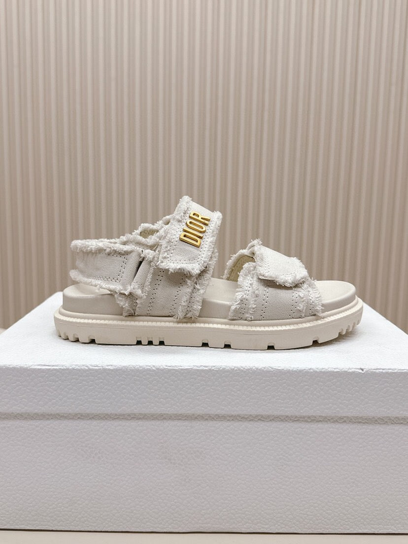 D-SANDAL IN WHITE CANVAS GOLD HARDWARE