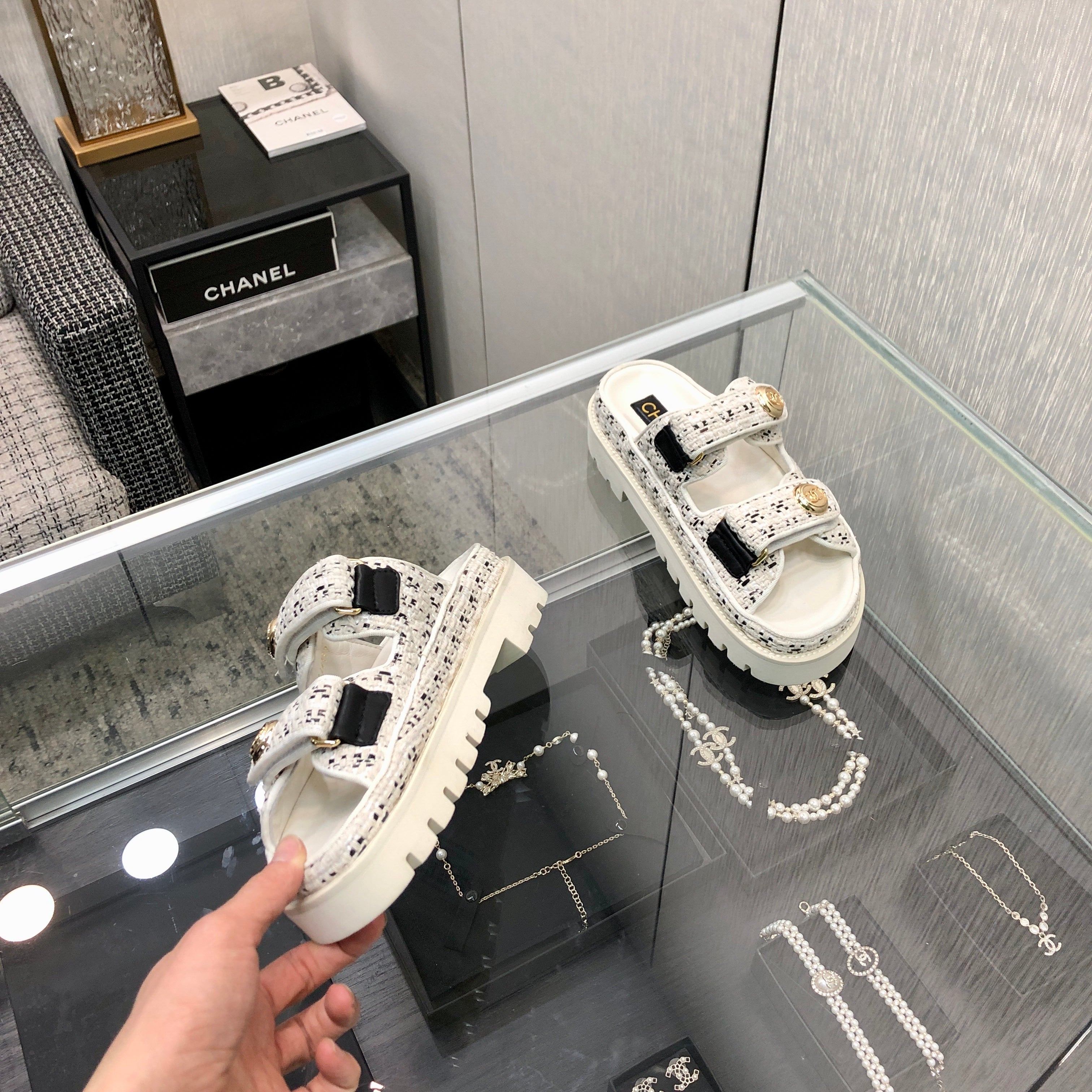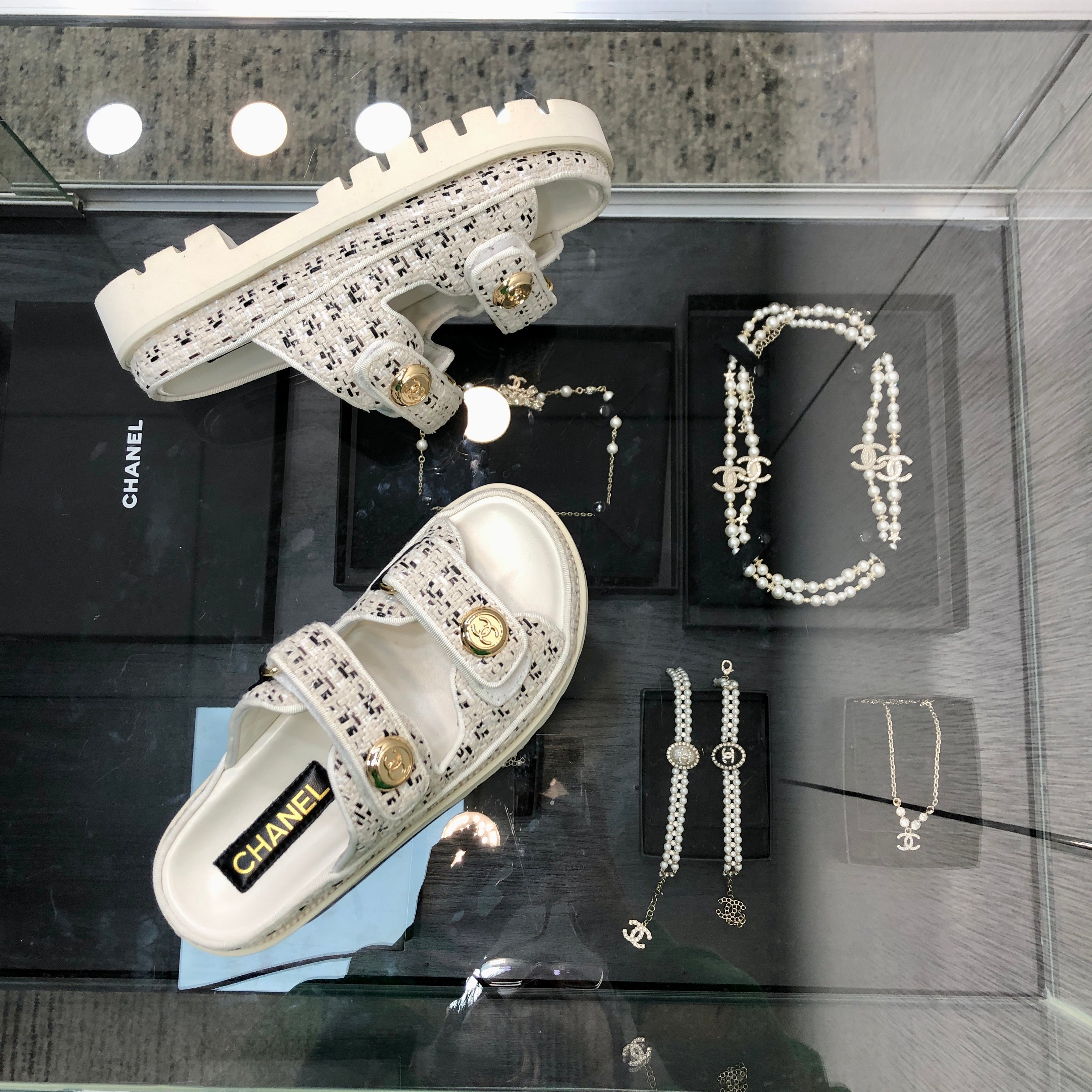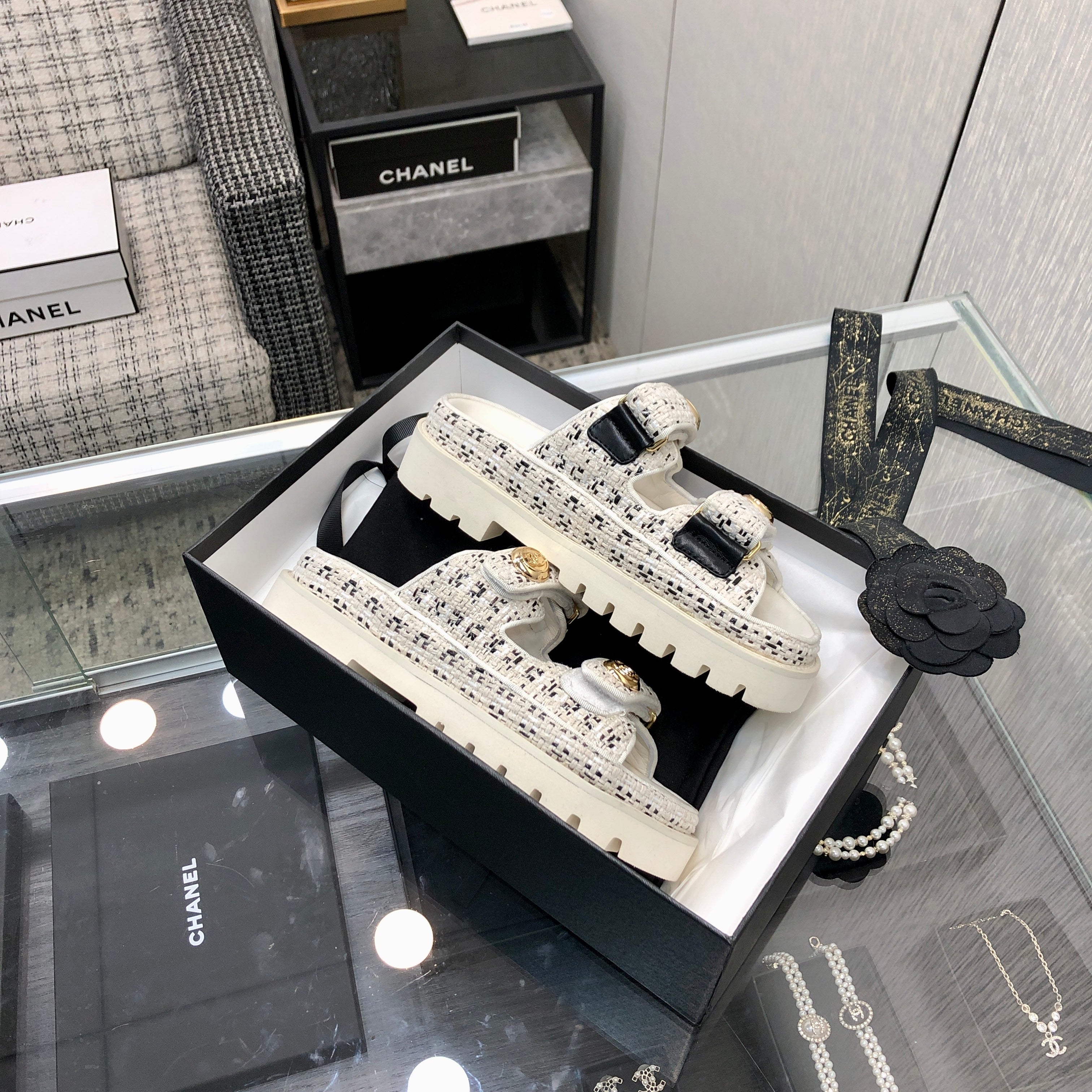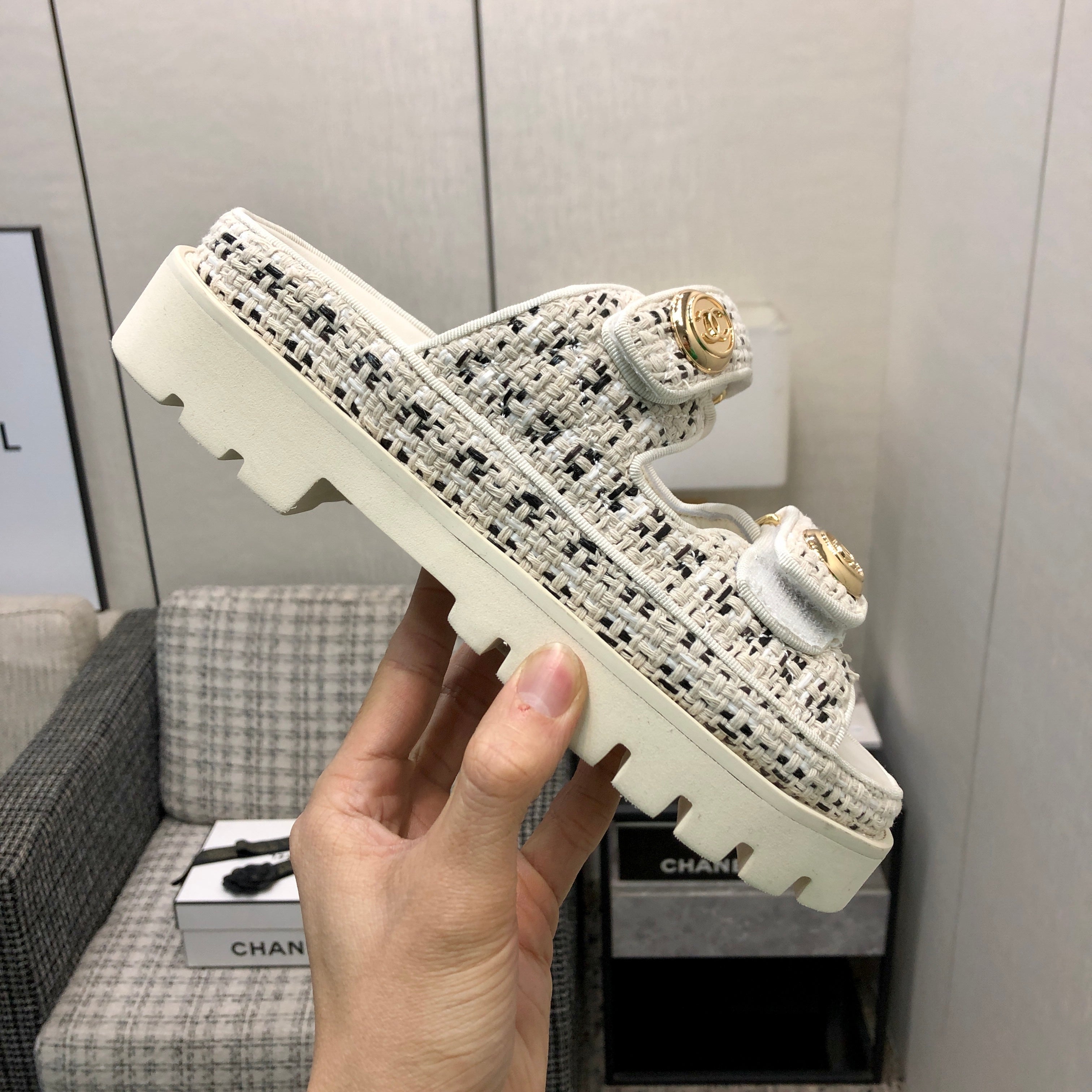 DAD SANDAL MULE IN WHITE MIX BLACK TWEED FABRIC