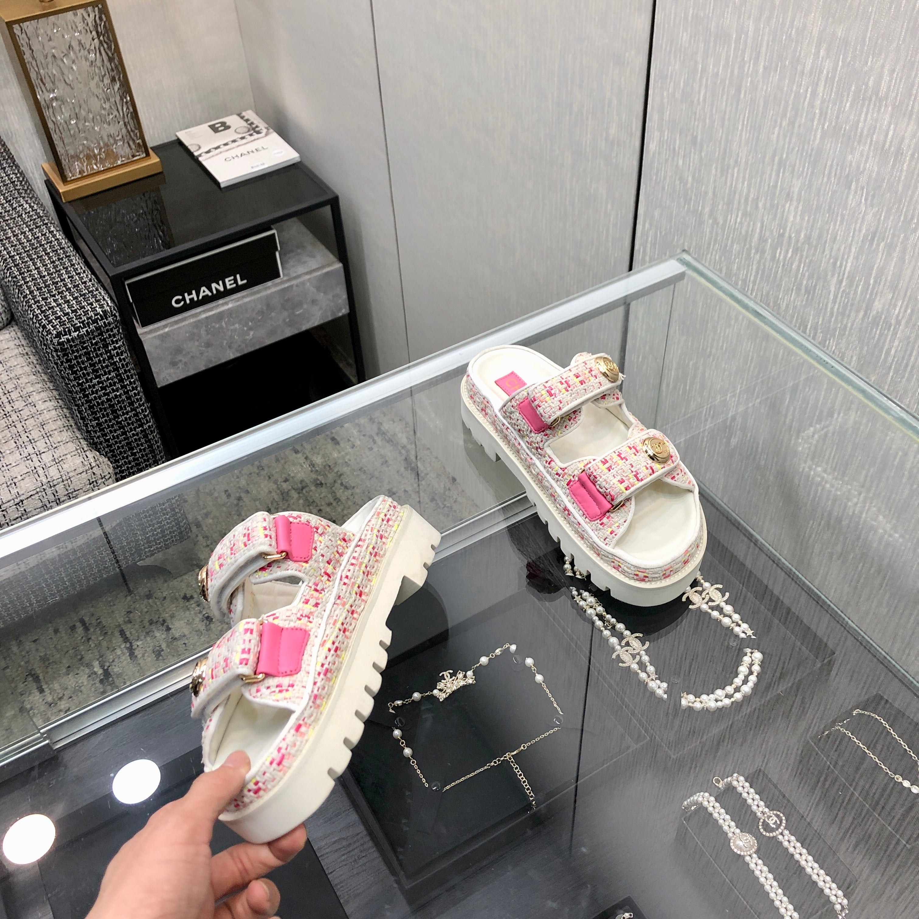DAD SANDAL MULE IN WHITE MIX BRIGHT PINK TWEED FABRIC