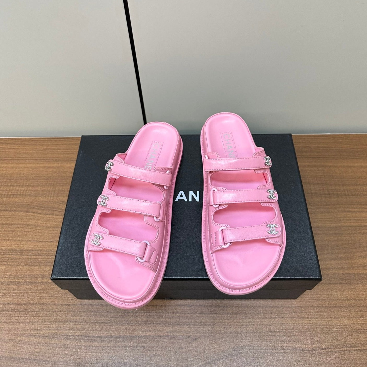 dad sandals pink 3 rows lambskin mules