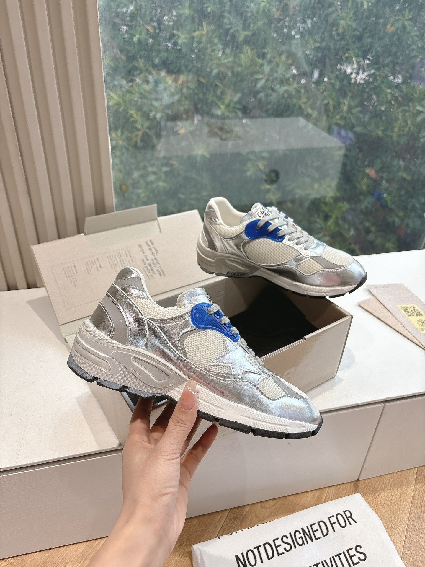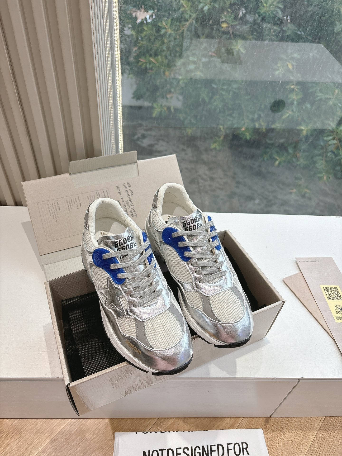 DAD-STAR SNEAKERS IN WHITE MESH SILVER CALFSKIN BLUE EYELETS
