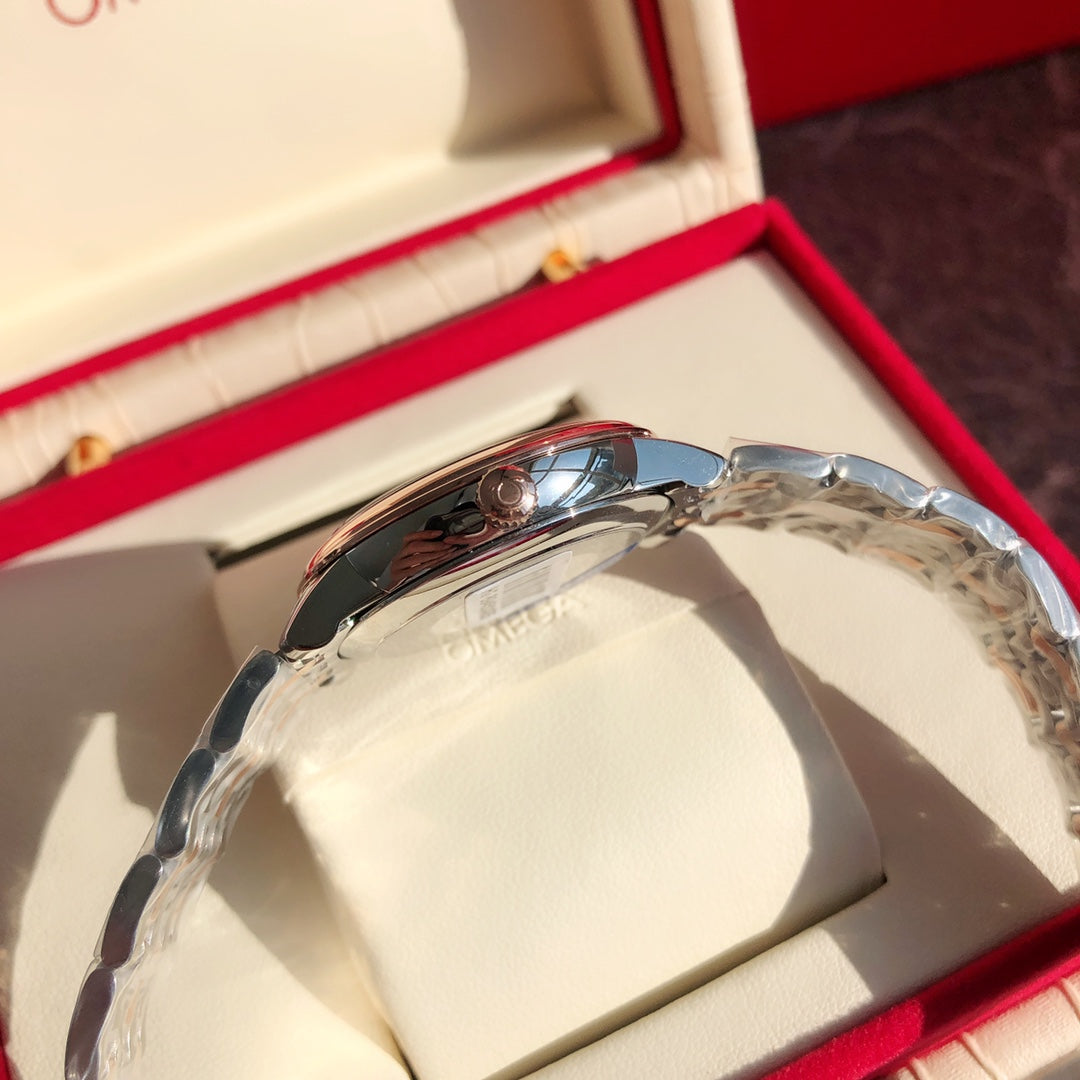 DE VILLE PRESTIGE WATCH SILVER AND ROSE GOLD CASE WITH WHITE DIAL