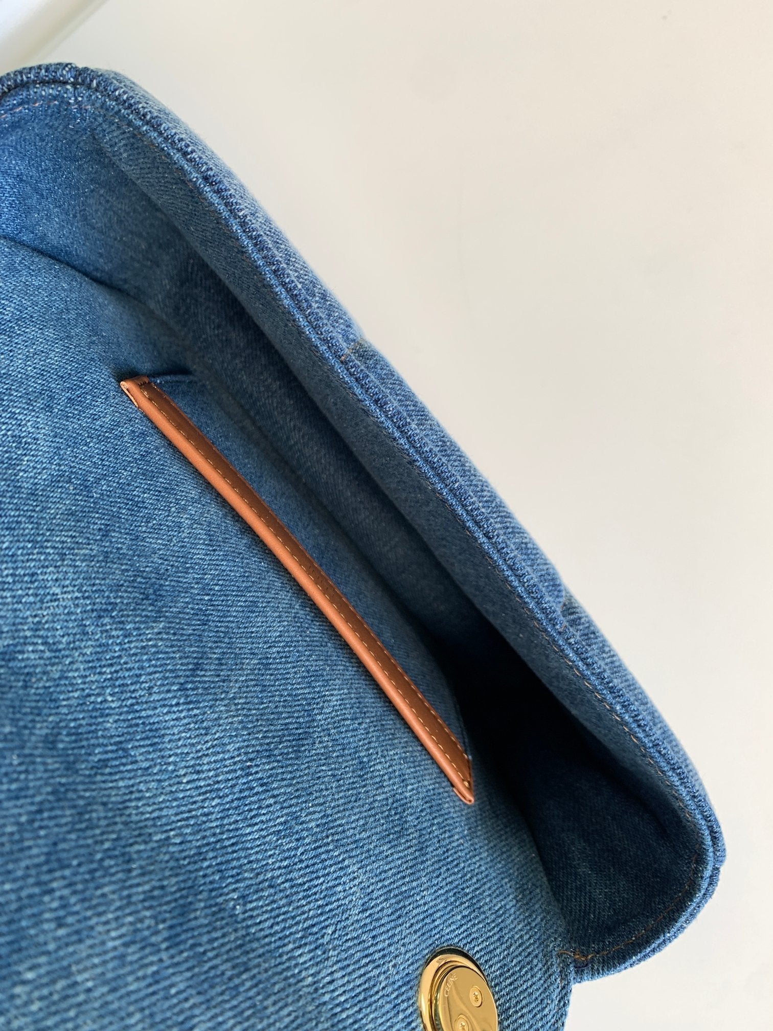 DENIM LEATHER 24 CHAIN SHOUDER BAG