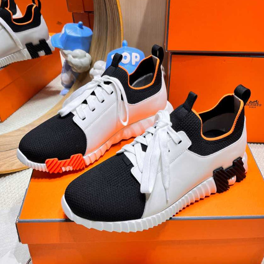DEPART SLIP-ON SNEAKER IN WHITE MIX BLACK KNIT AND CALFSKIN