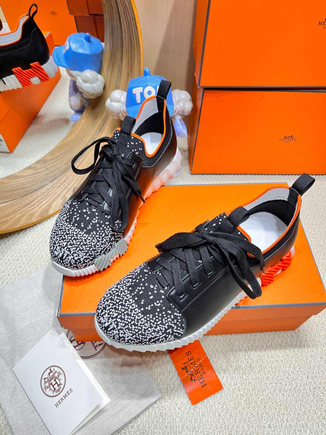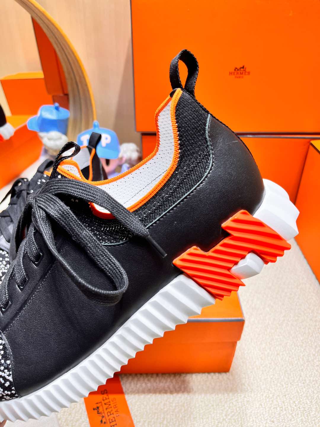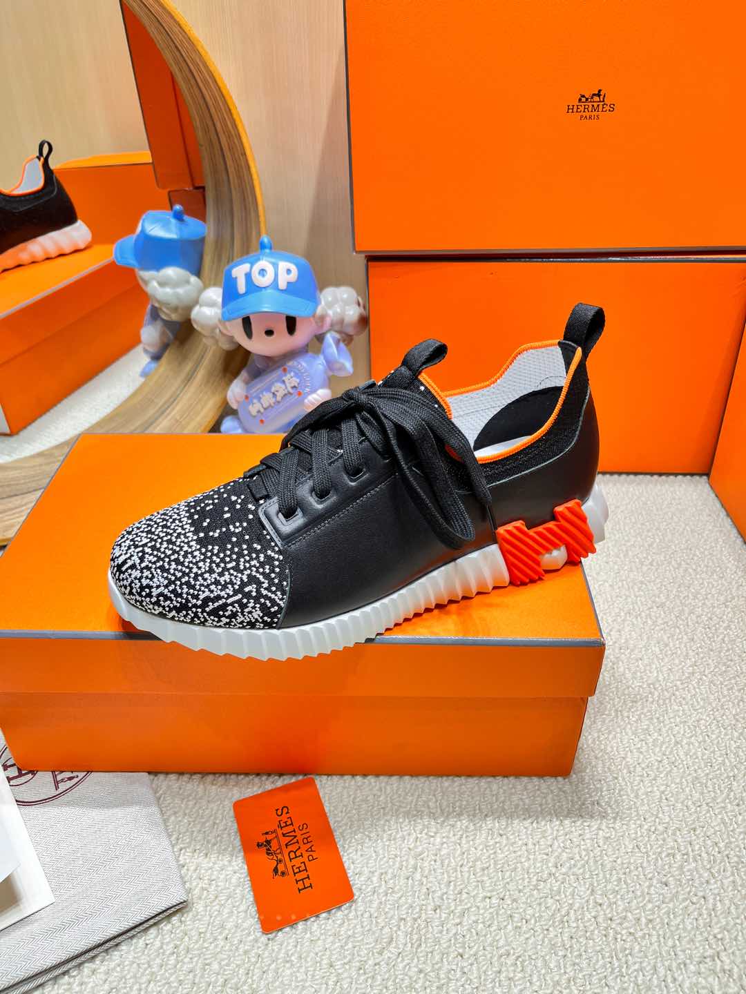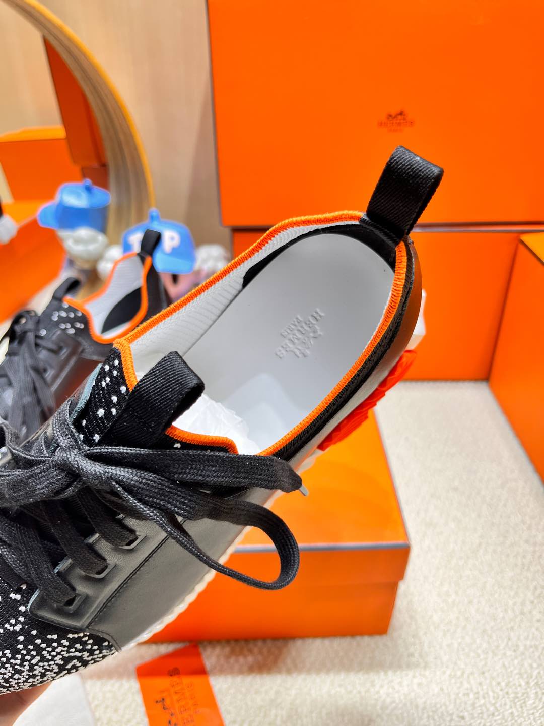 DEPART SLIP-ON SNEAKER IN WHITE MIX BLACK KNIT AND CALFSKIN