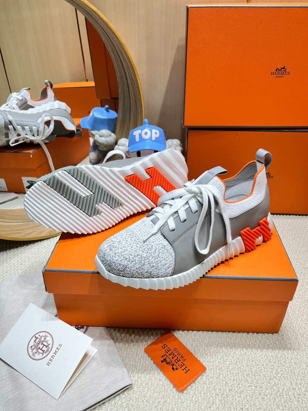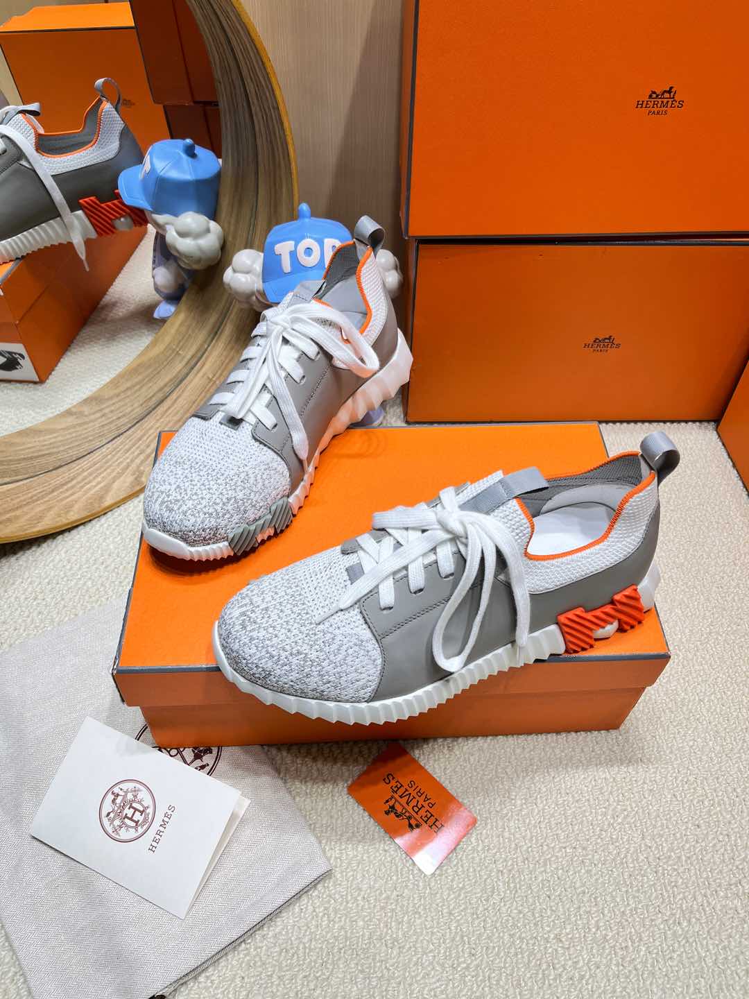 DEPART SLIP-ON SNEAKER IN WHITE MIX MOUSE GRAY KNIT AND CALFSKIN