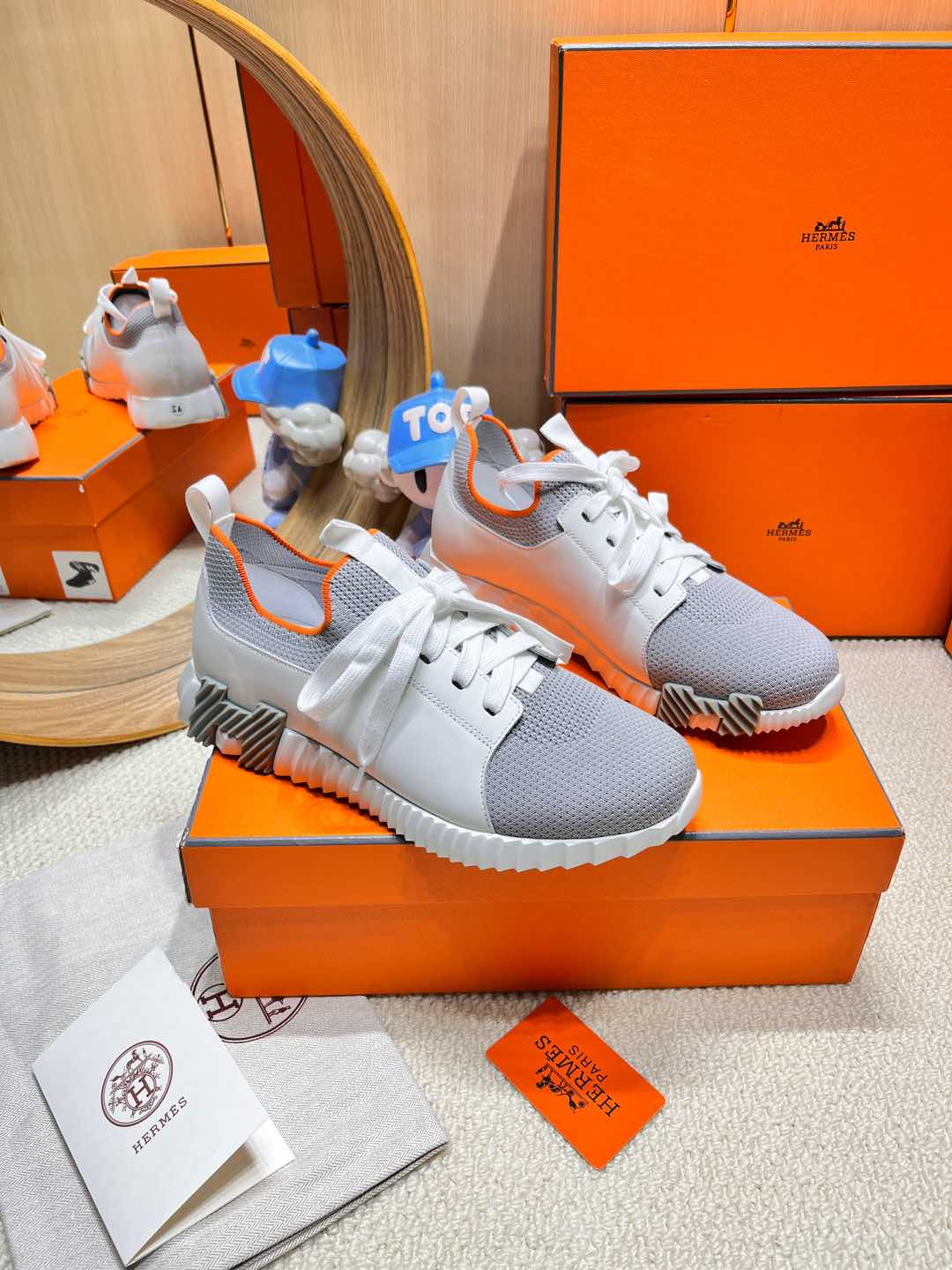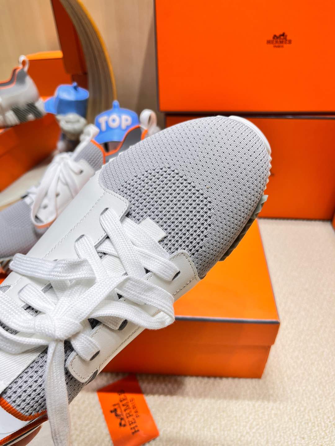 DEPART SLIP-ON SNEAKER IN WHITE MIX SHARK GRAY KNIT AND CALFSKIN