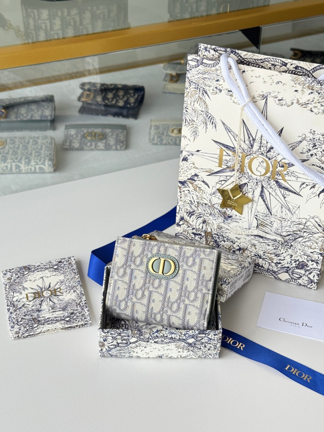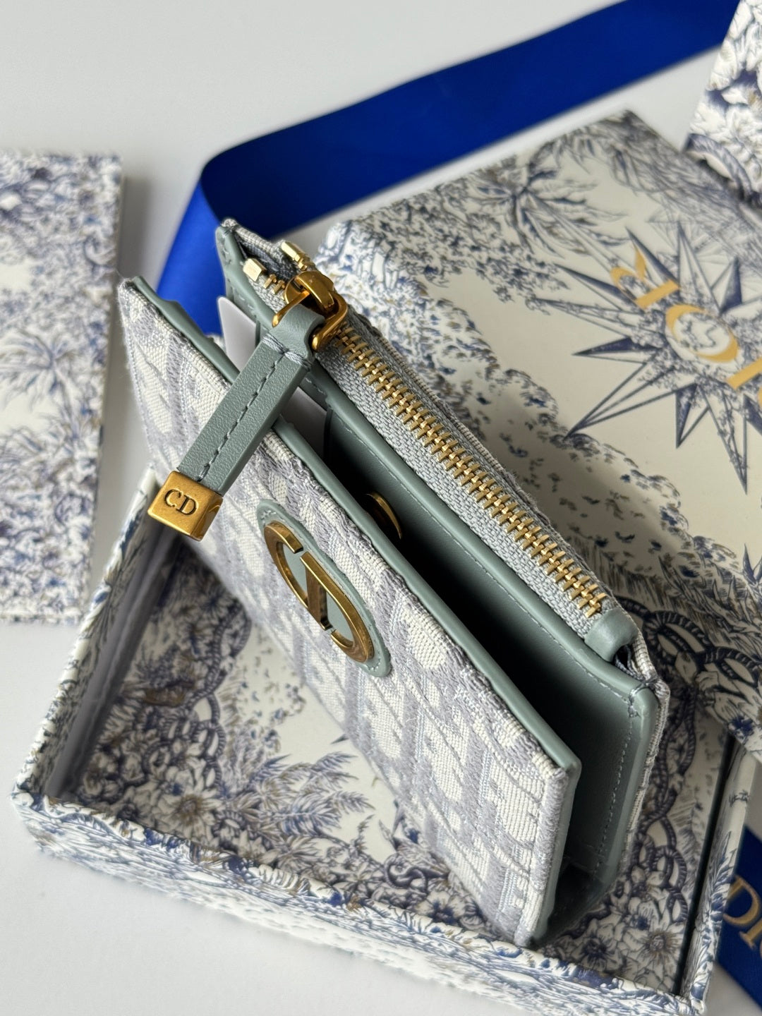 DIOR 25S 30 MONTAIGNE DAHLIA WALLET 11 IN GRAY DIOR OBLIQUE JACQUARD