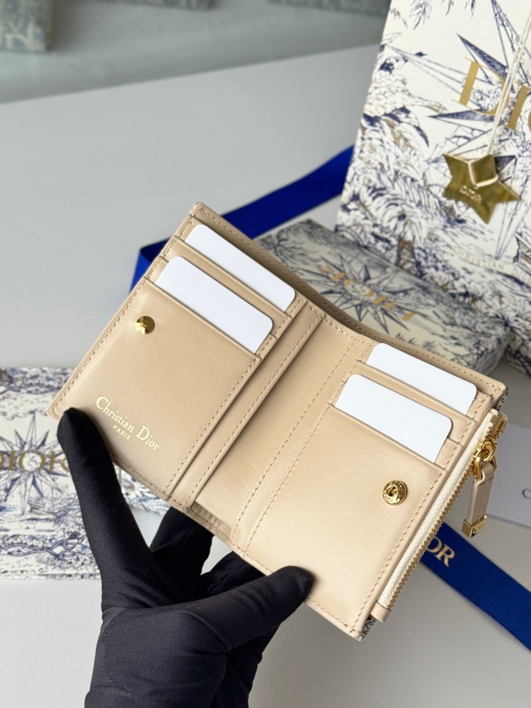 DIOR 25S 30 MONTAIGNE DAHLIA WALLET 11 IN LIGHT BLUE DIOR OBLIQUE JACQUARD