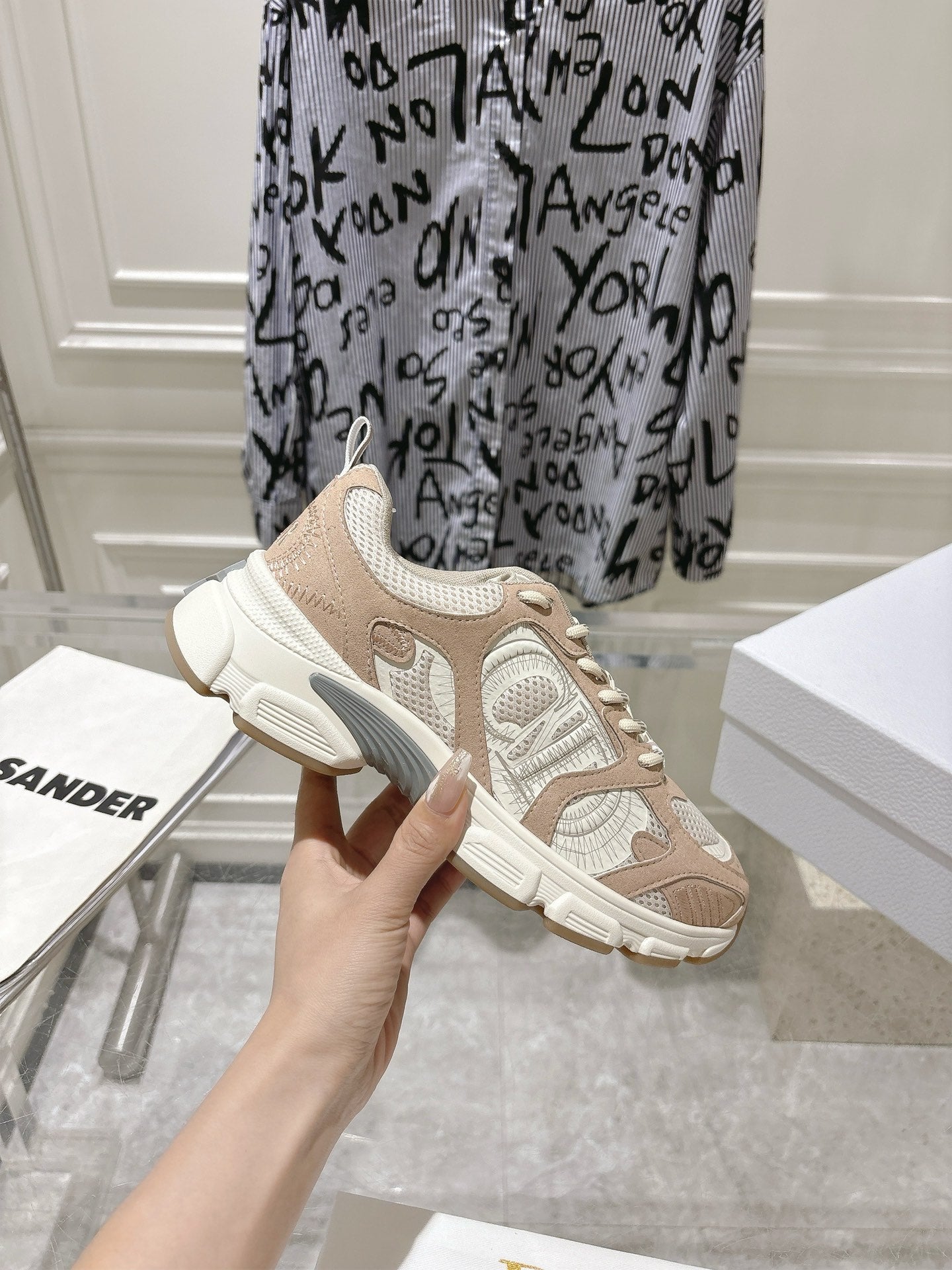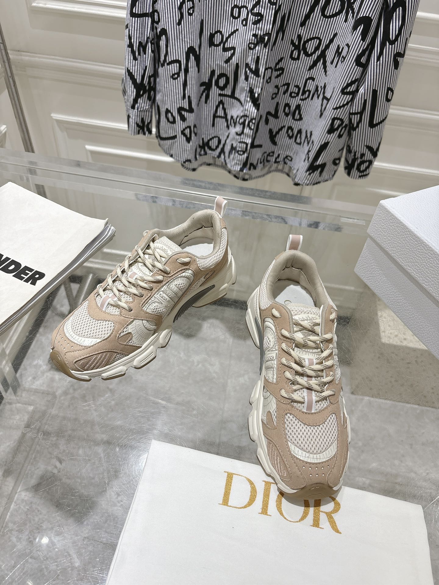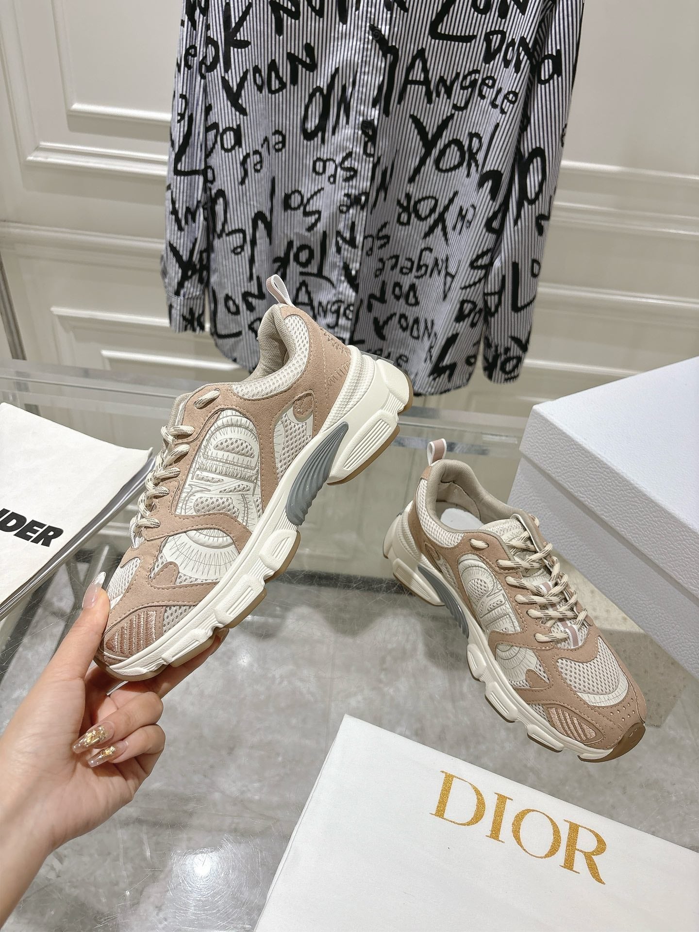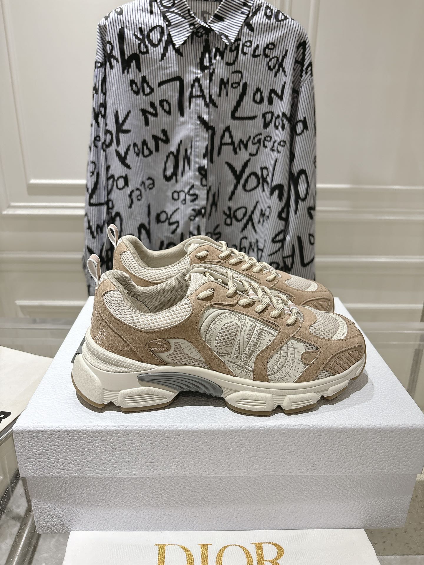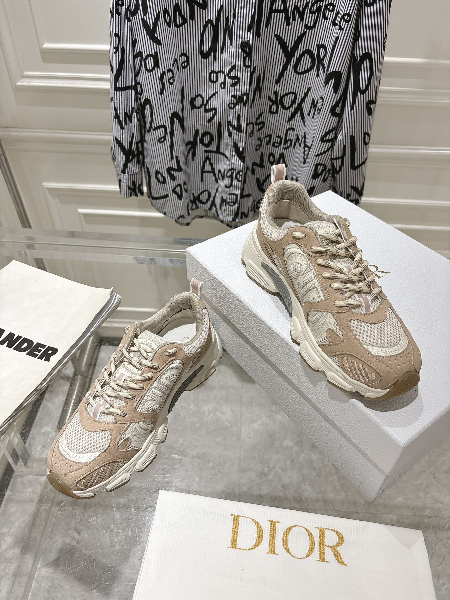 DIOR 25S CHRONO SNEAKER 45MM IN MESH WITH WHITE AND LIGHT BROWN CALFSKIN