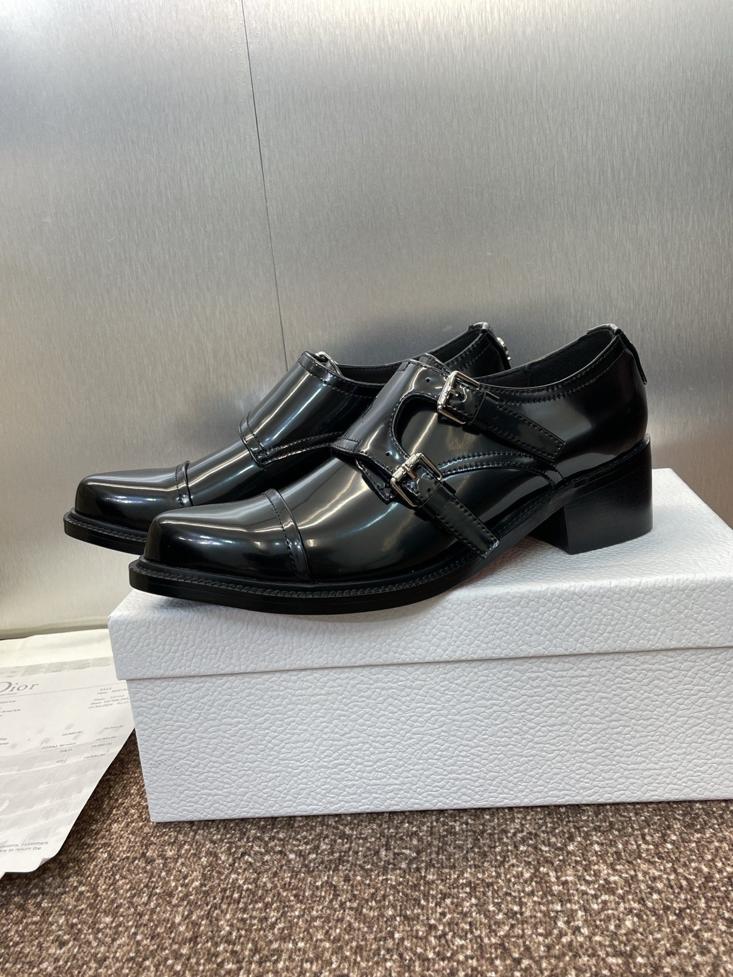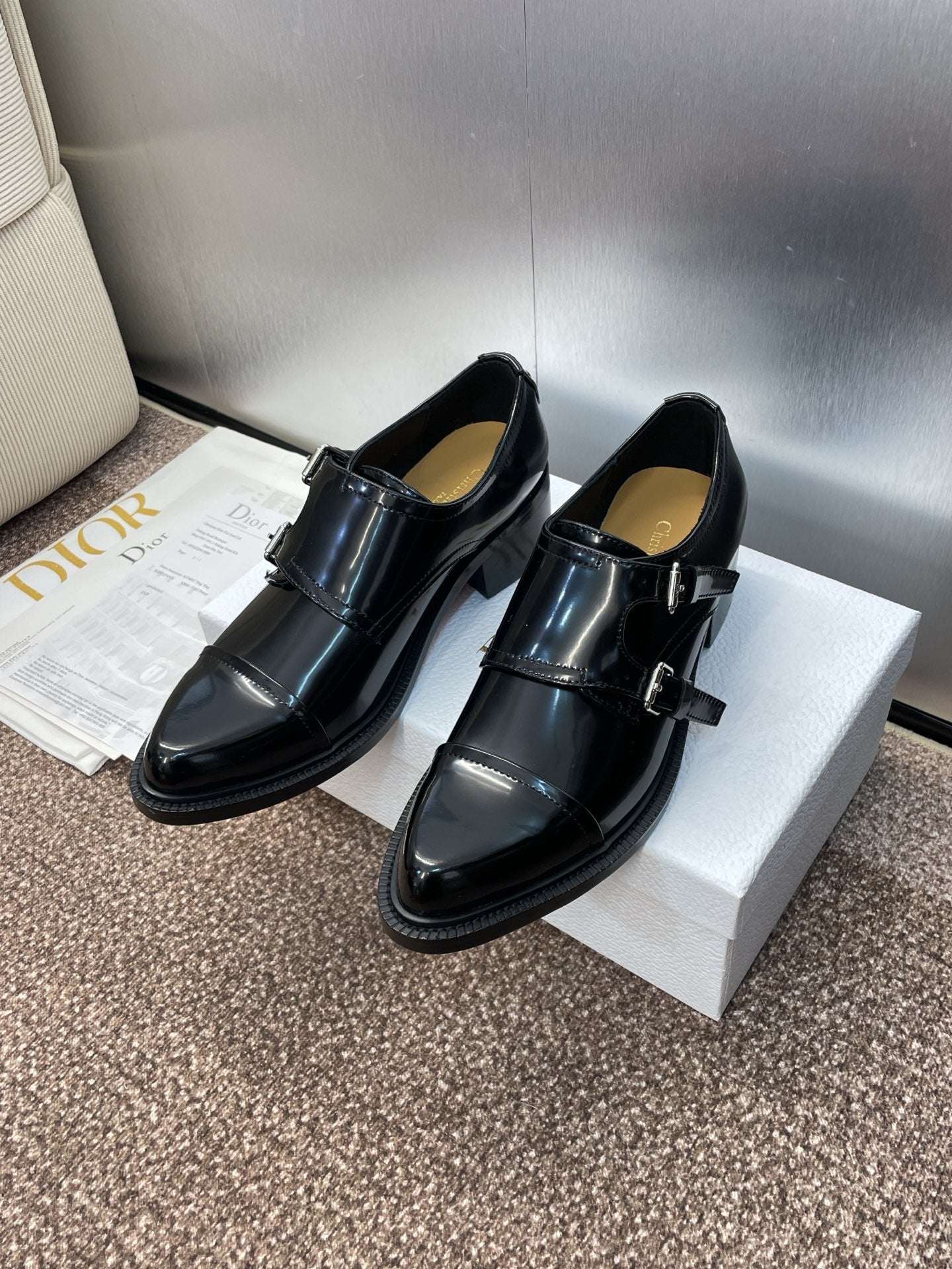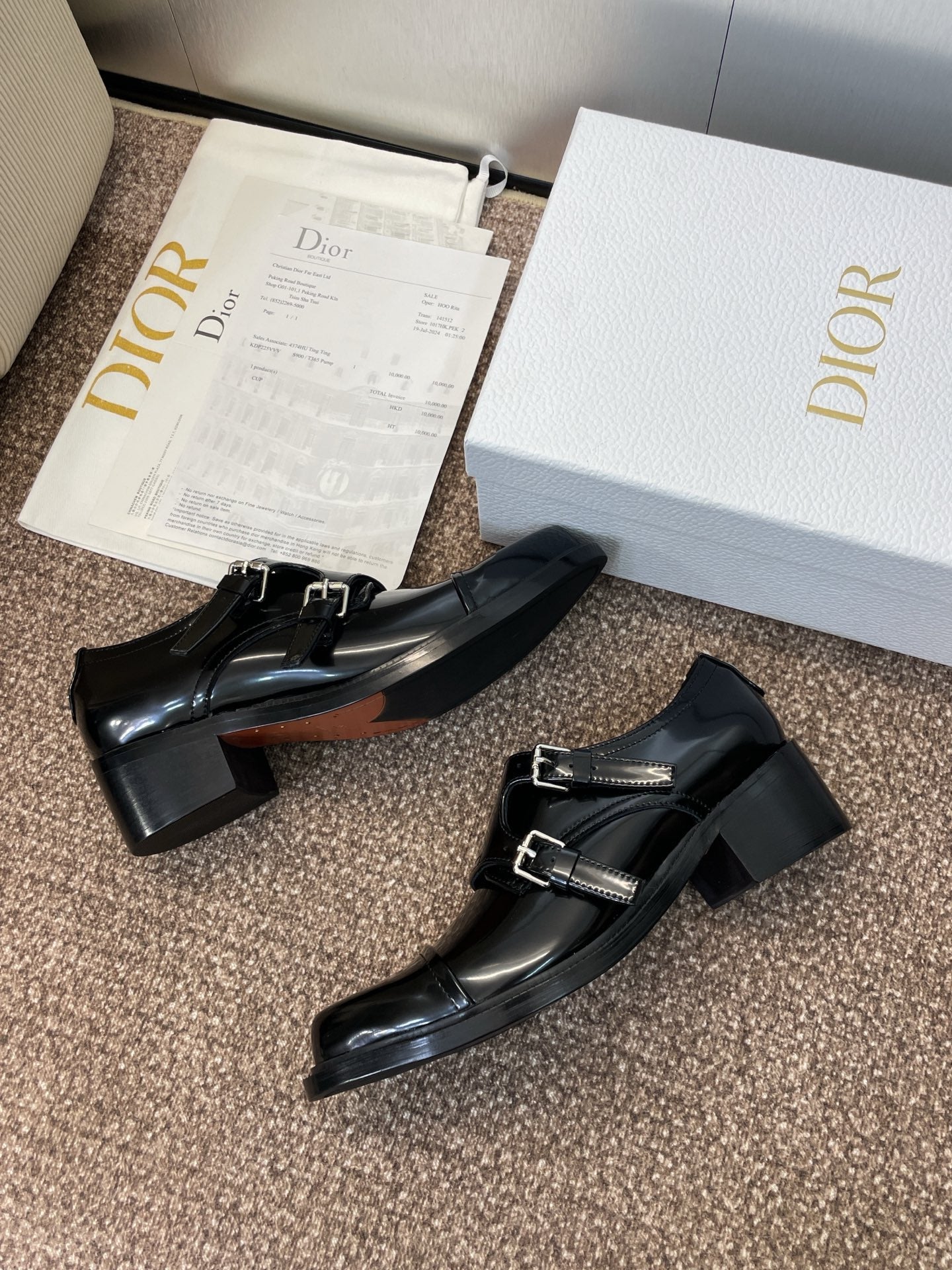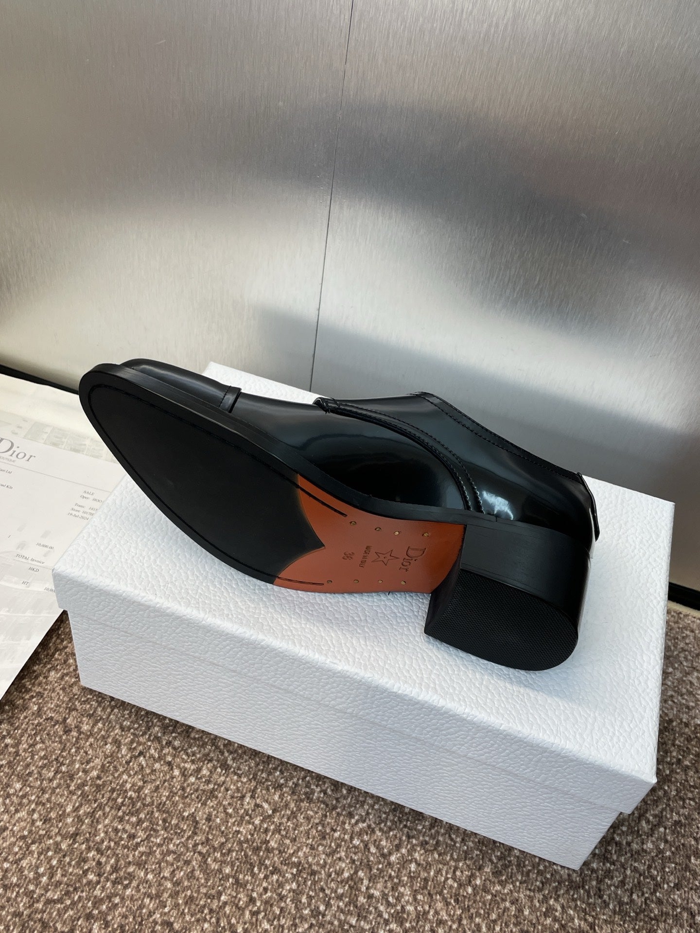 DIOR 25S D-IVIERA SERIES LOW-CUT DEEP VAMP LOAFERS 35MM IN BLACK GLOSSY CALFSKIN