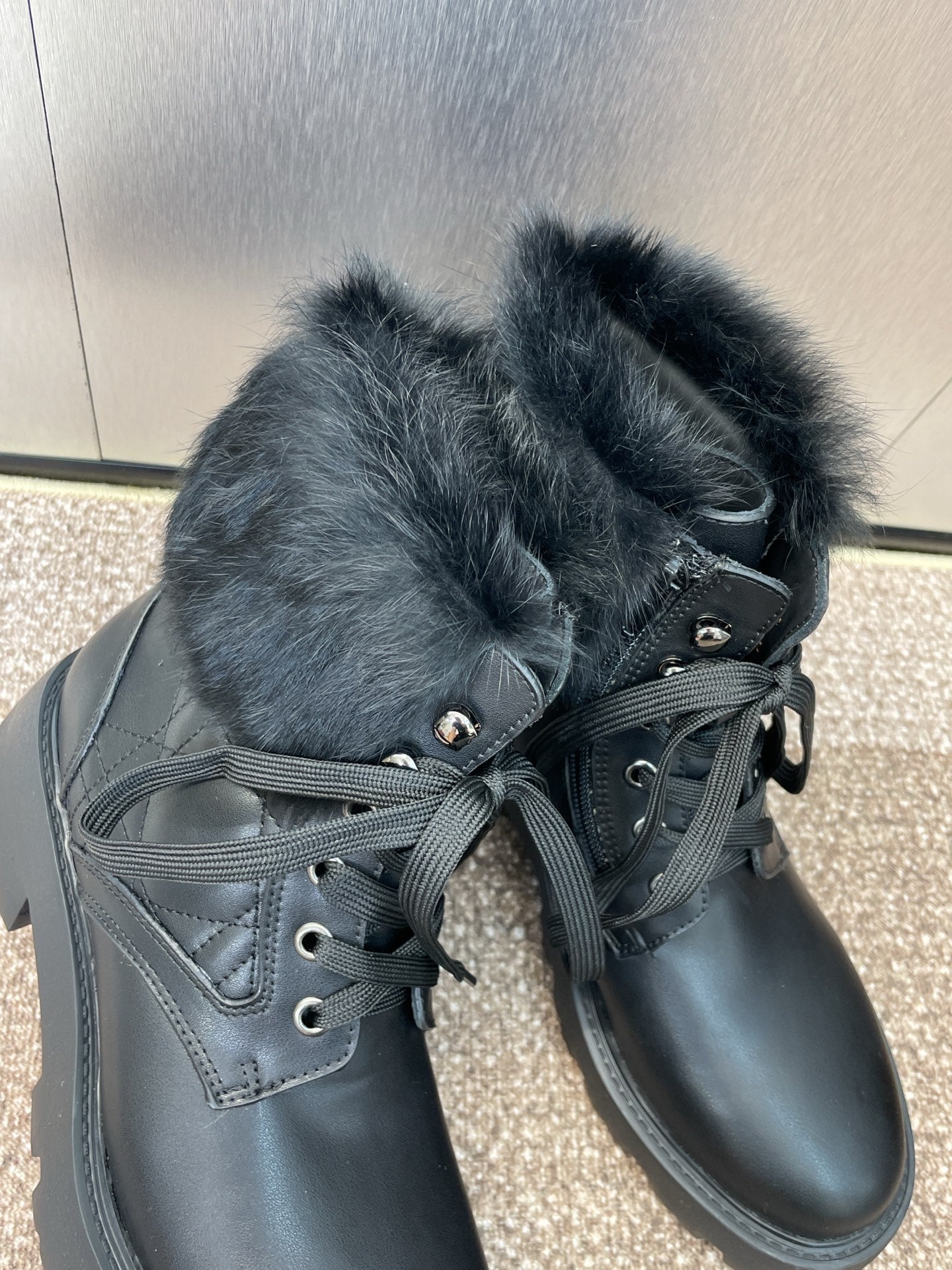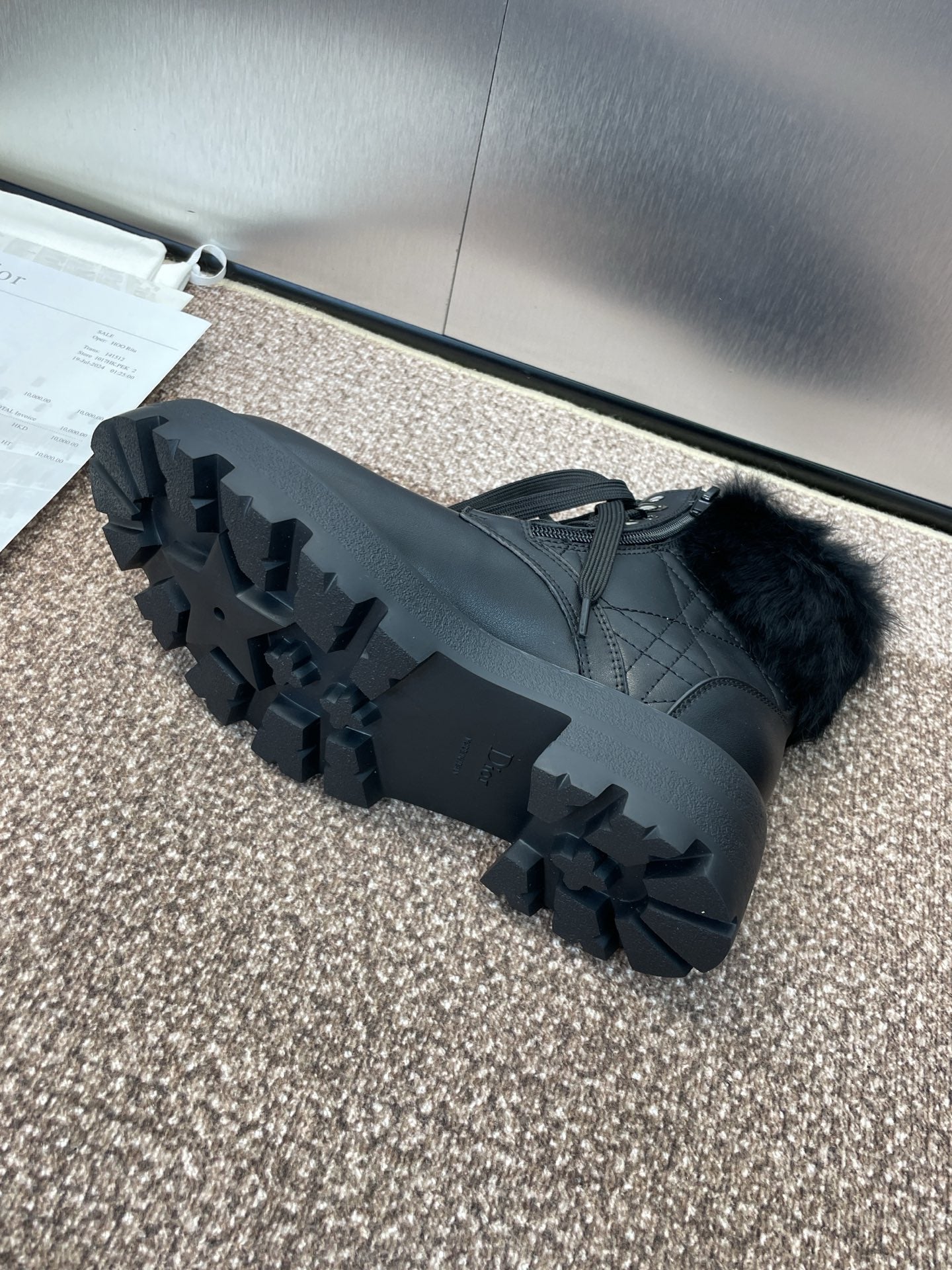 DIOR 25S D-MAJOR ANKLE BOOTS WICKER STYLE 35MM IN BLACK CALFSKIN AND FUR