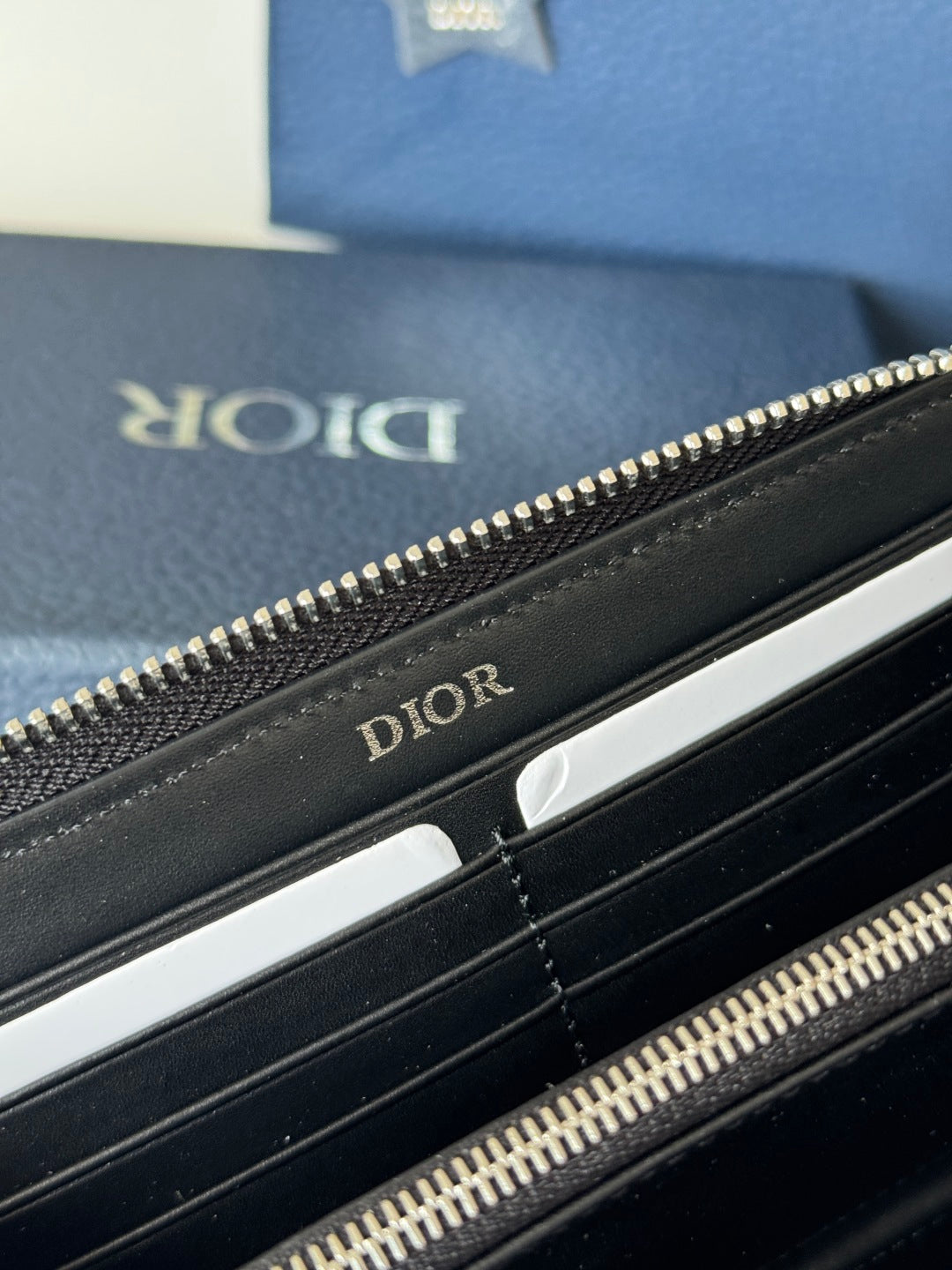DIOR 25S LONG VERTICAL ZIPPED WALLET 19 IN BLACK CALFSKIN SILVER HARDWARE