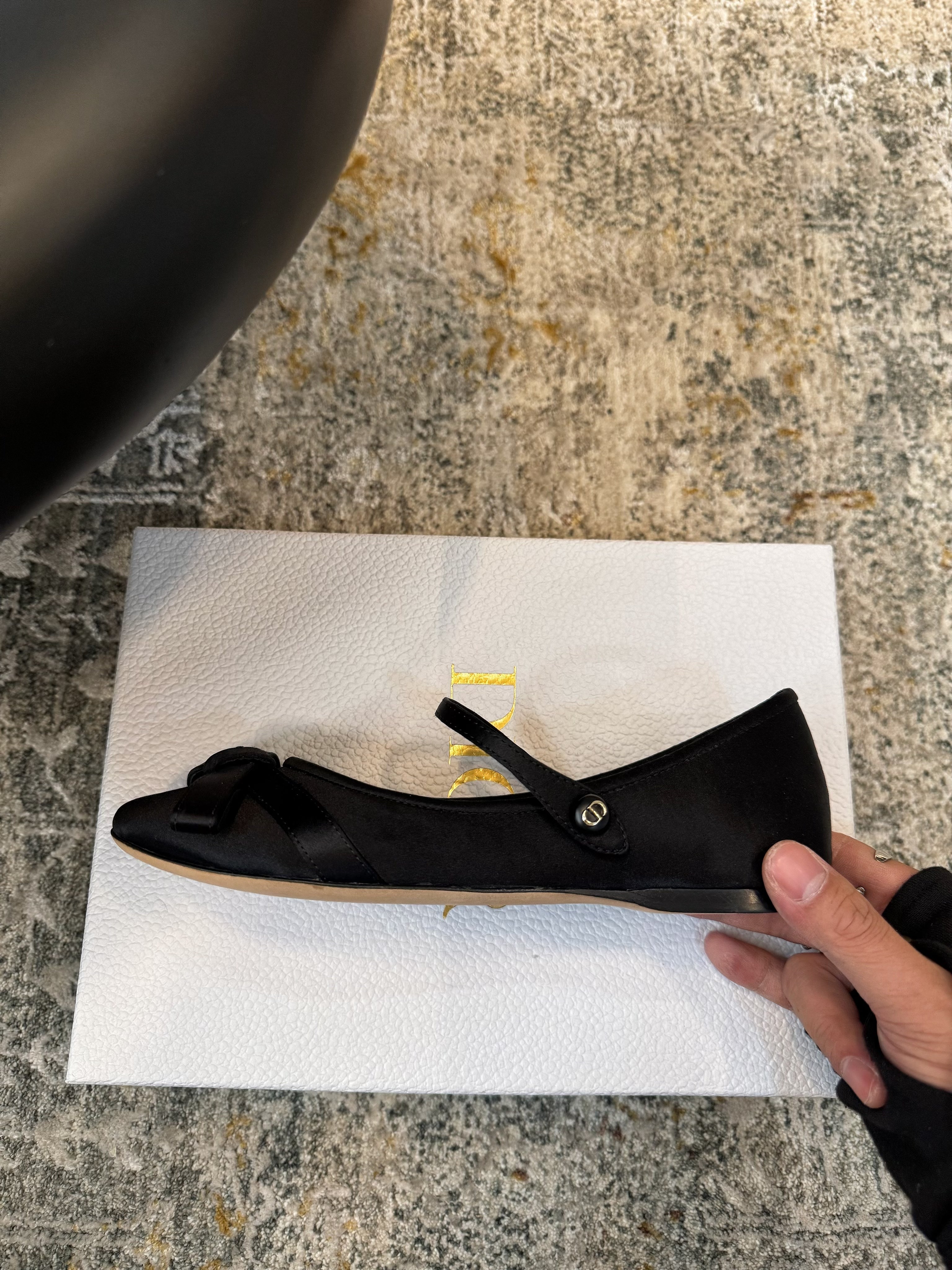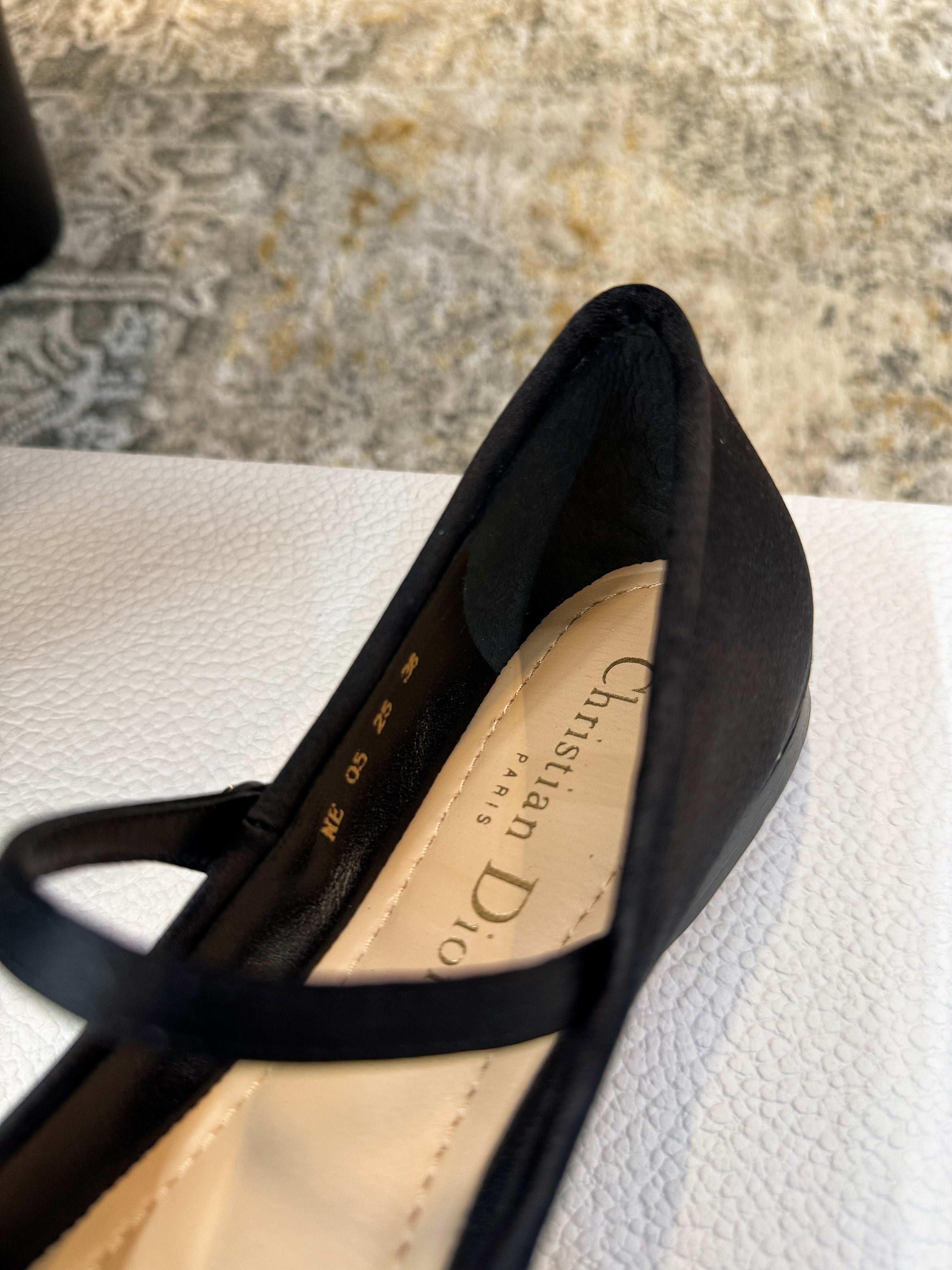 DIOR 25S LOVELY‑D BALLET FLAT 10MM IN BLACK SATIN